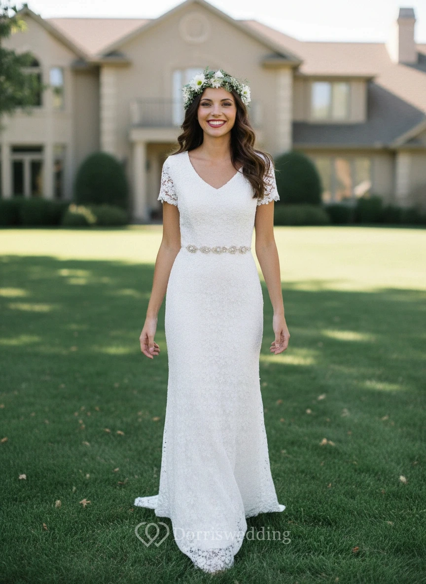 To make it easier for you to walk post-ceremony and dance, our seamstresses add buttons, or ribbons into the dress by lifting up the train or tucking it into itself.