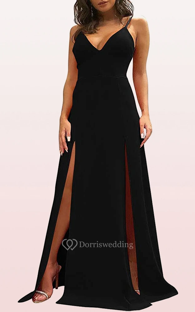 Casual Satin V-neck A Line Sleeveless Prom Dress With Split Front
