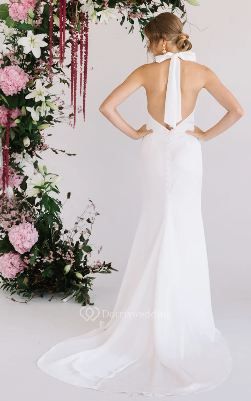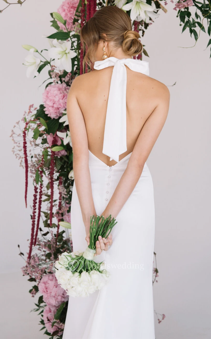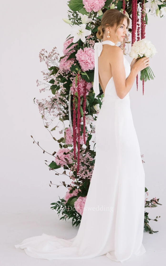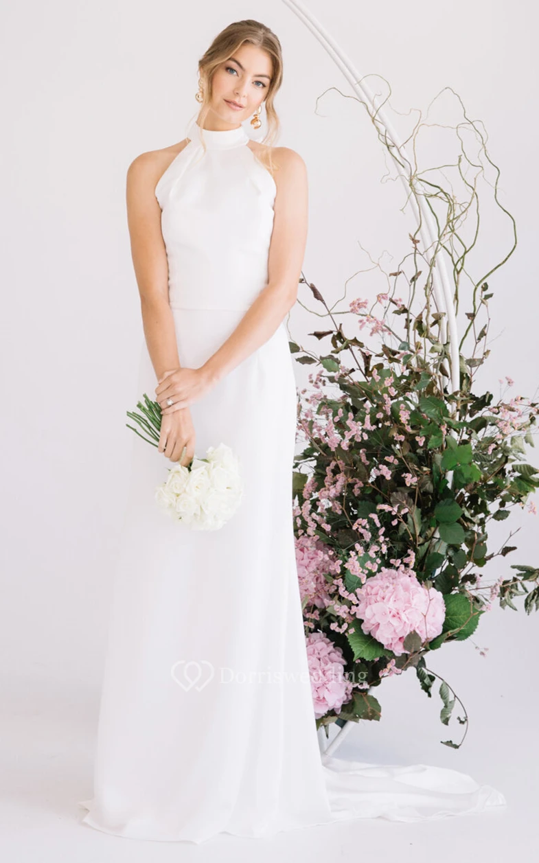 Casual Sheath Halter Satin Sleeveless Wedding Dress with Train