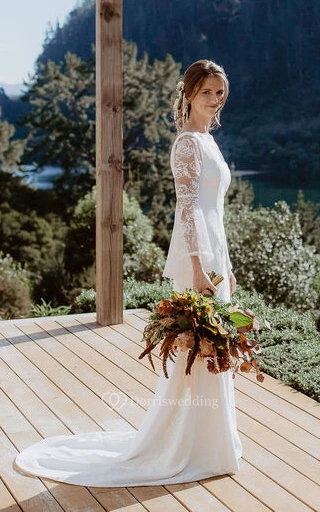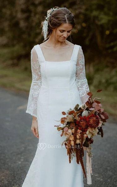 Casual Sheath Square Floor-length 3/4 Length Sleeve Lace Wedding Dress with Appliques