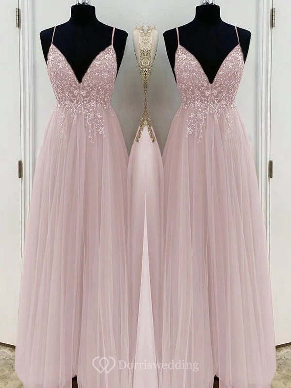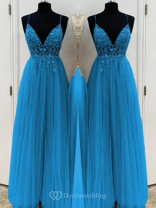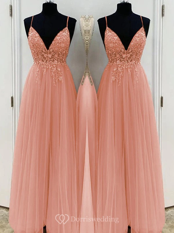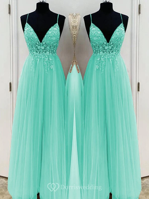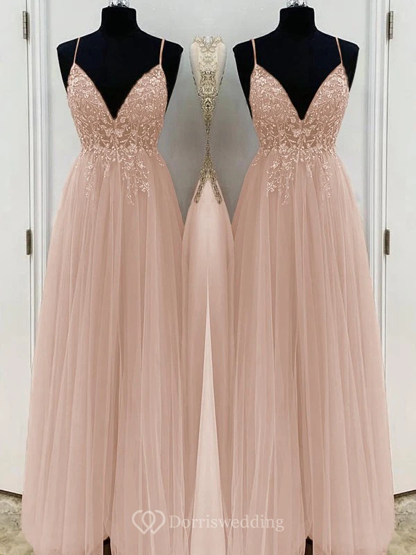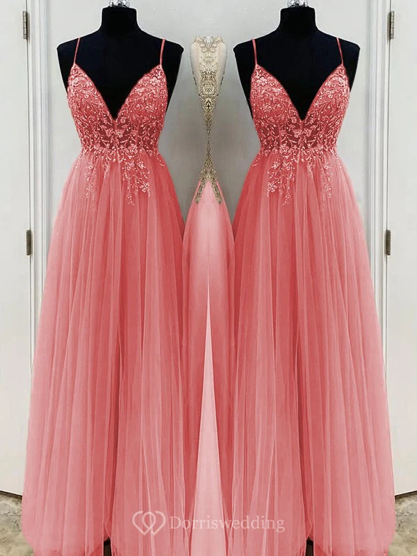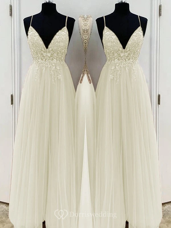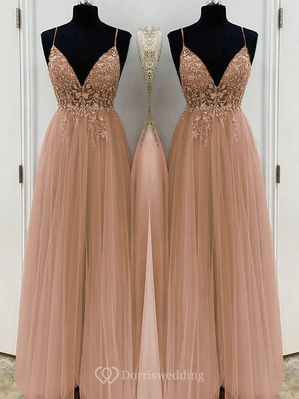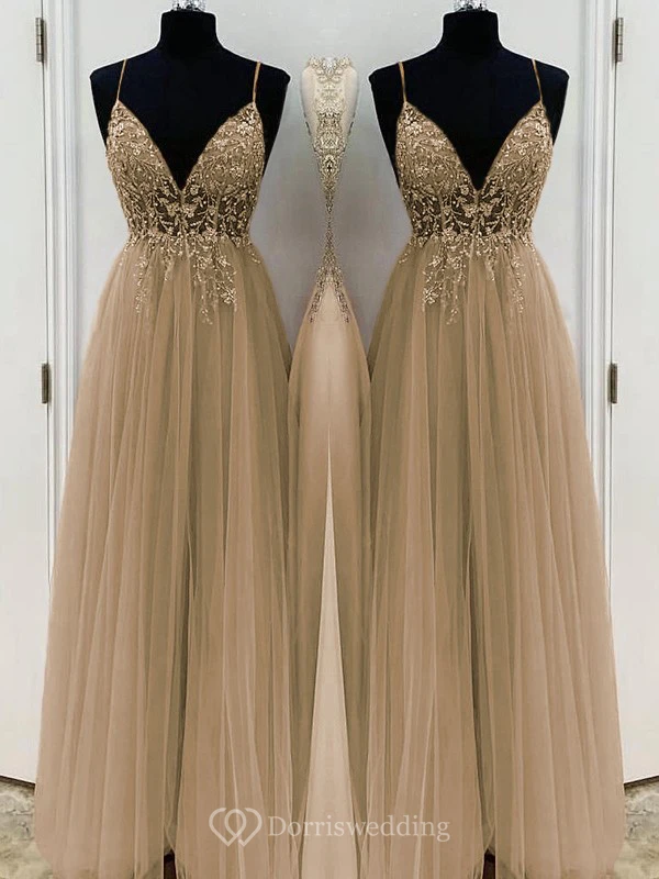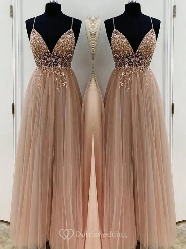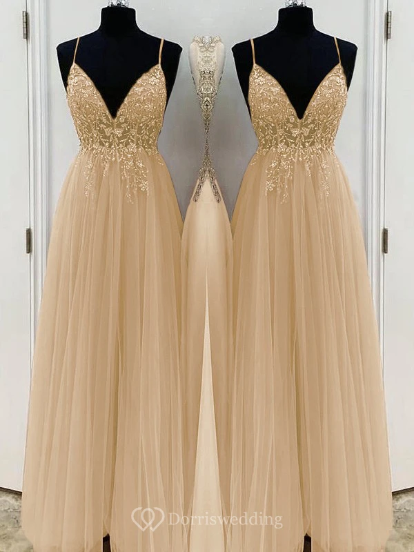 Casual Spaghetti Empire Tulle Pleated Prom Dress with Beaded Top