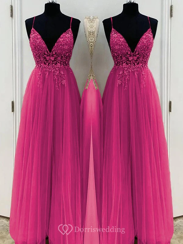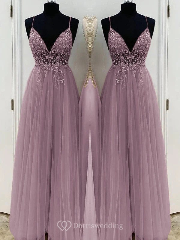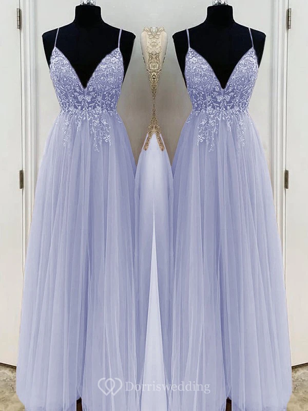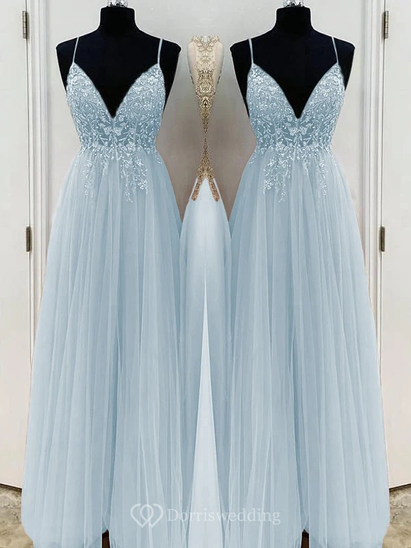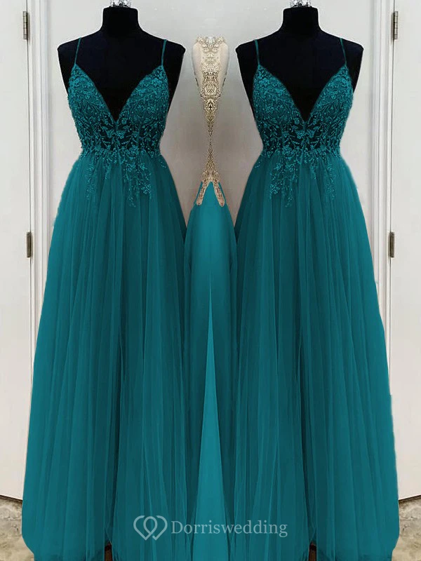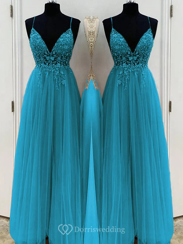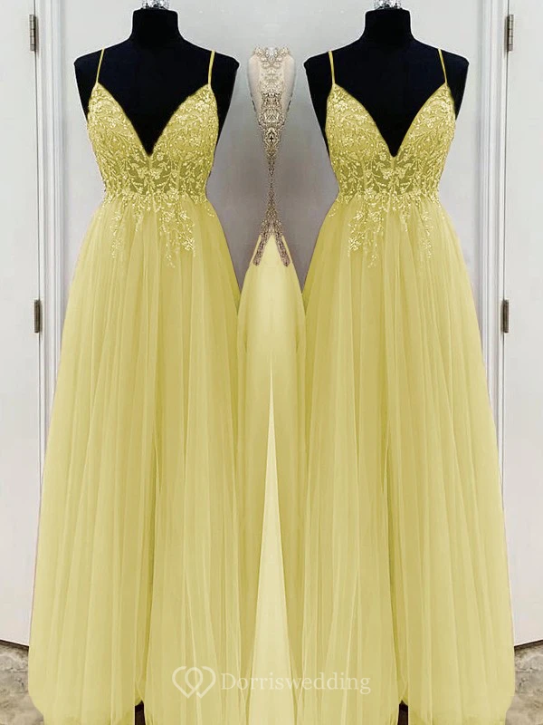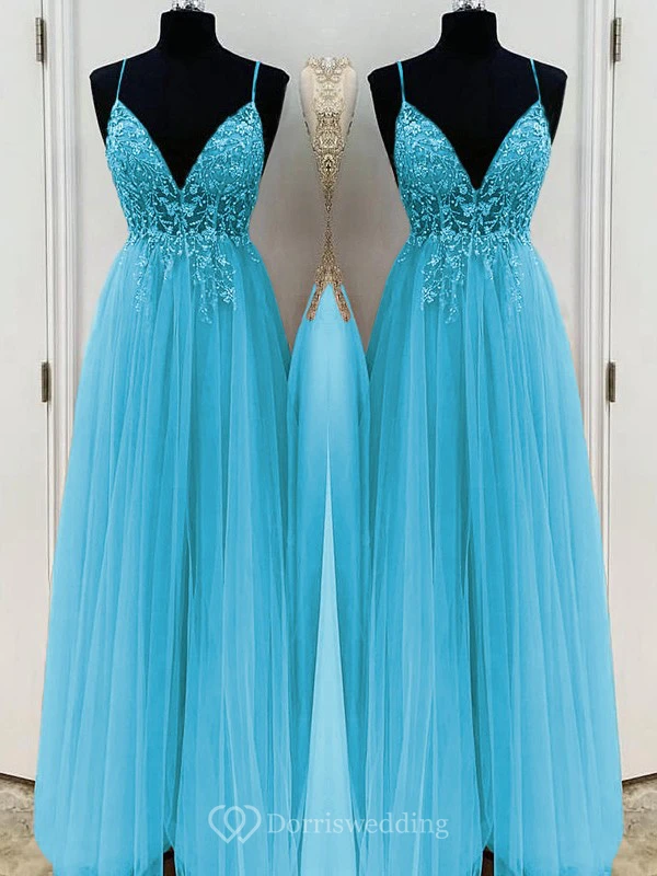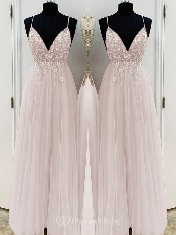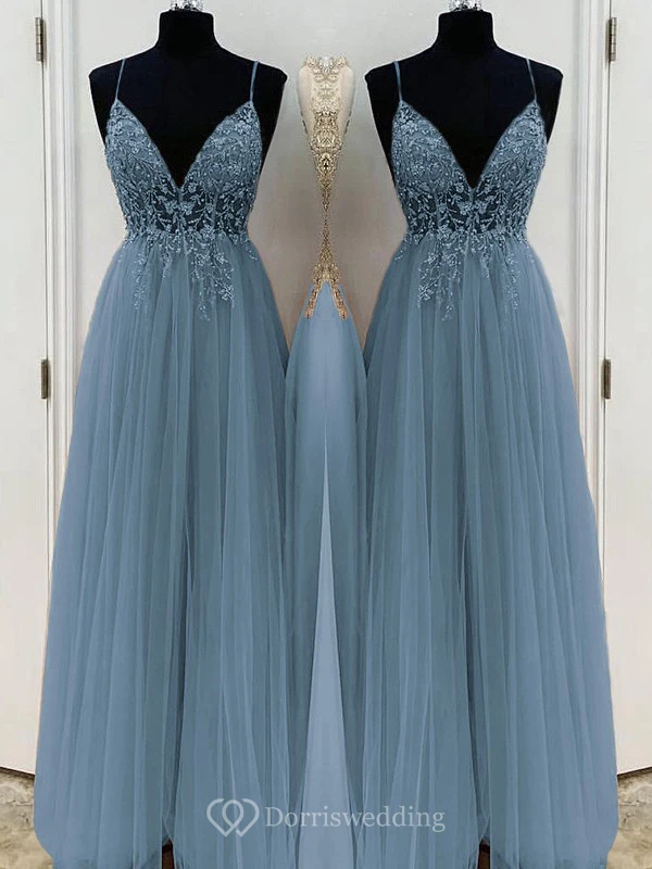 Casual Spaghetti Empire Tulle Pleated Prom Dress with Beaded Top