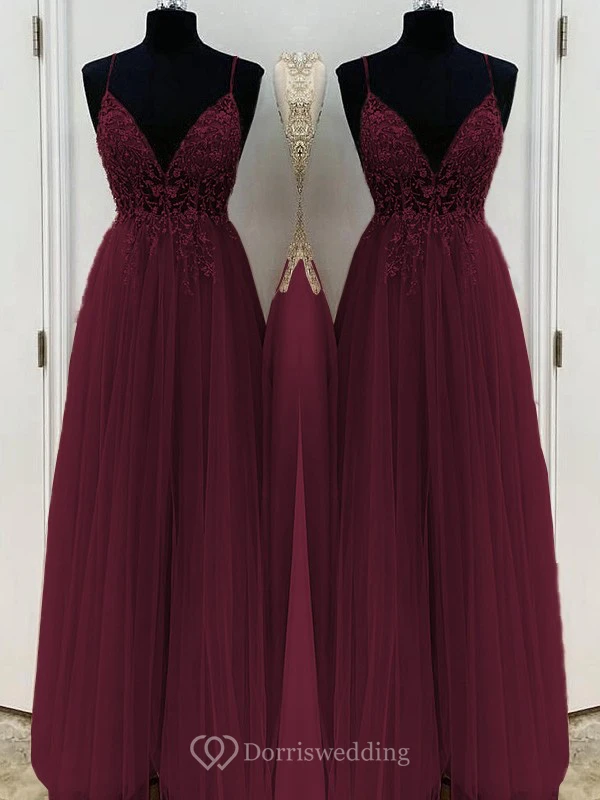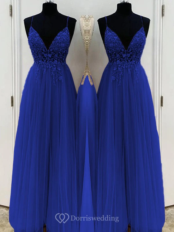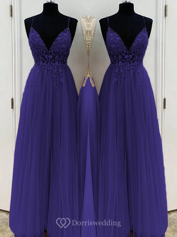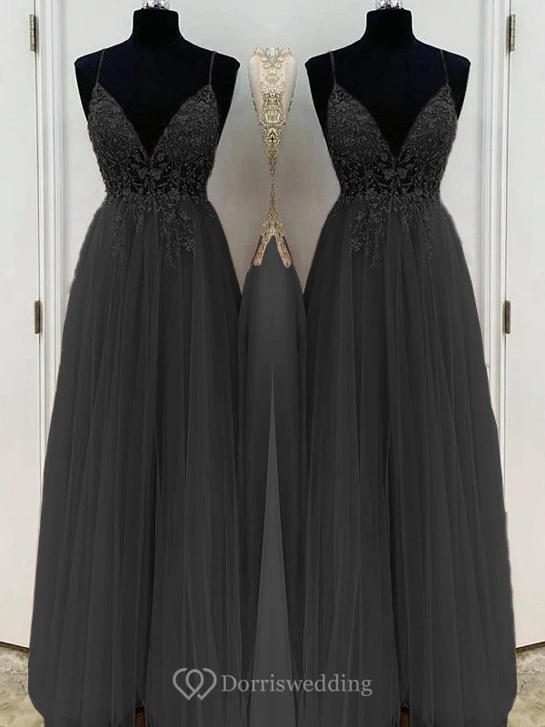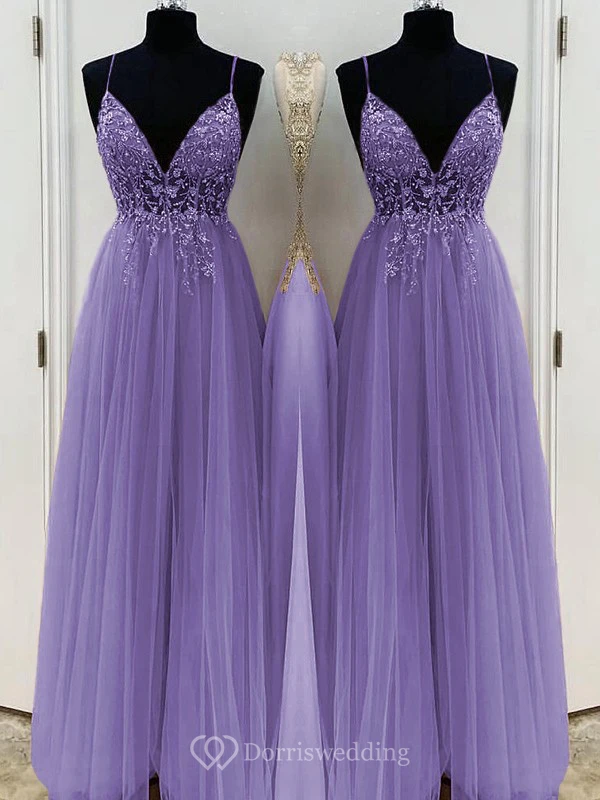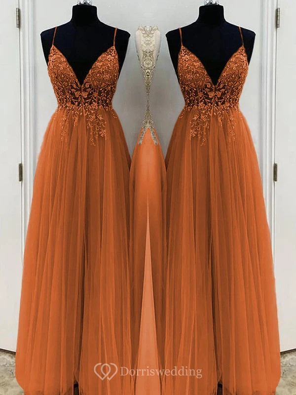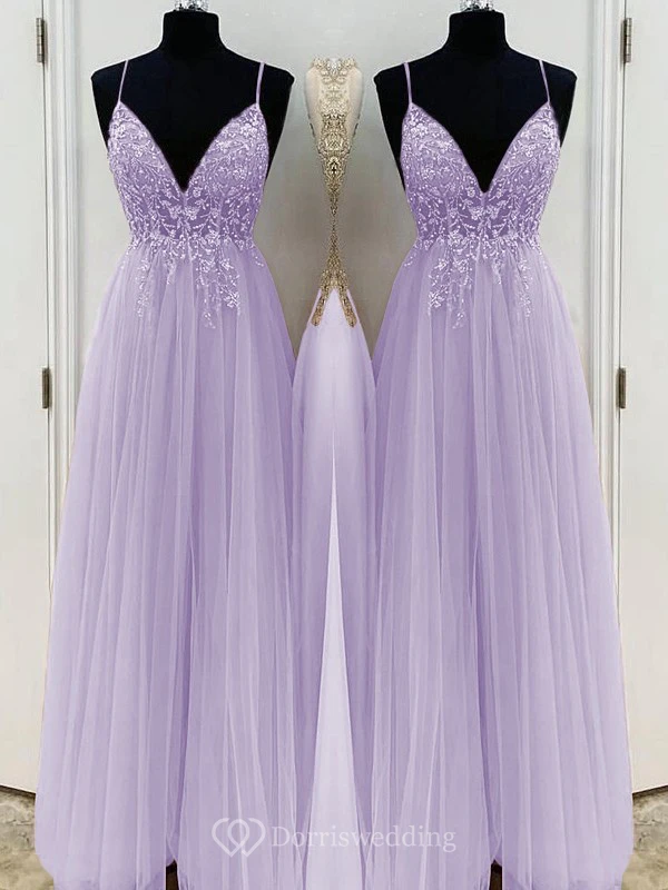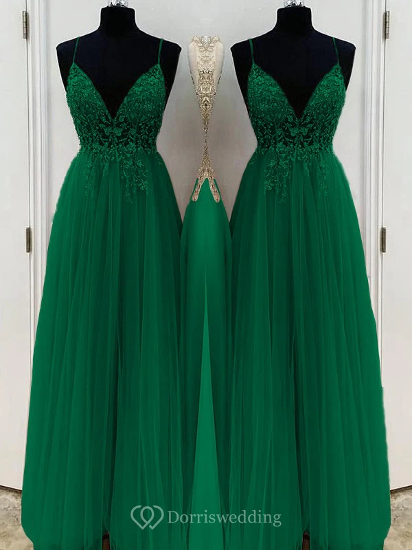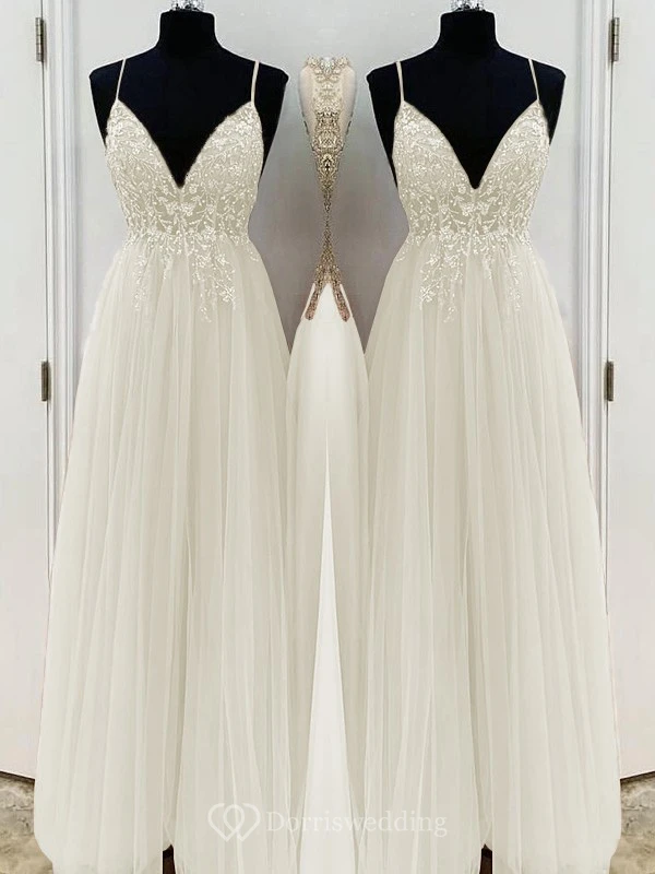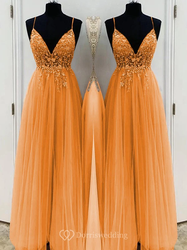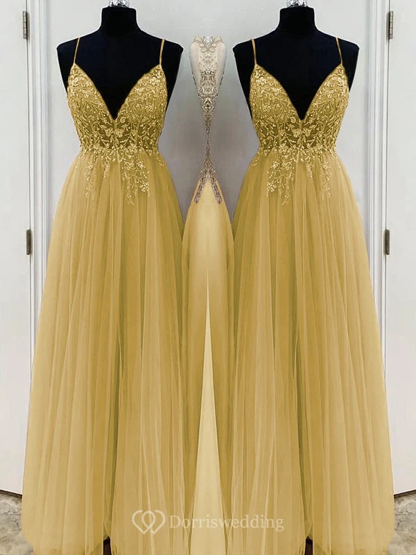 Casual Spaghetti Empire Tulle Pleated Prom Dress with Beaded Top