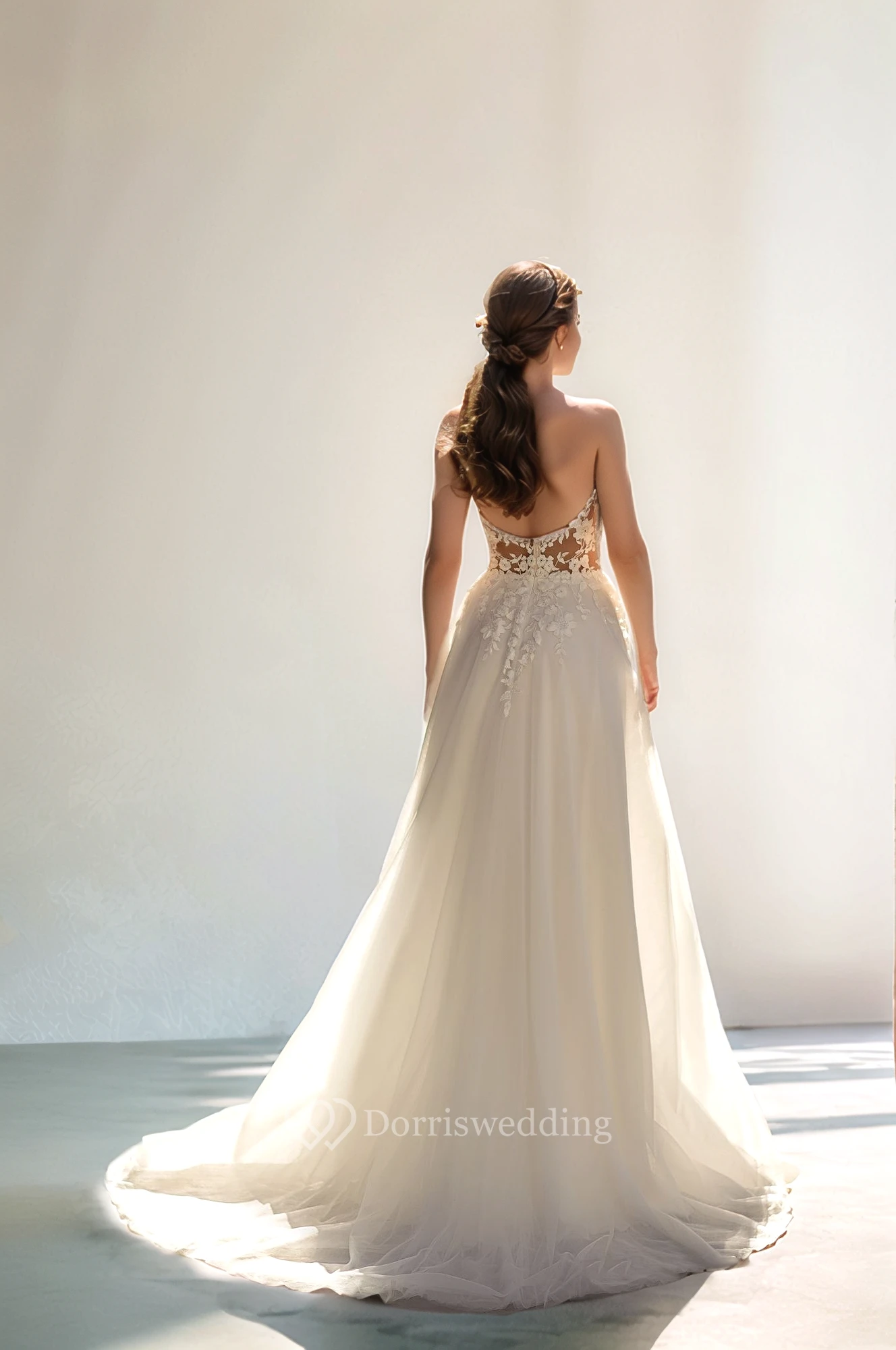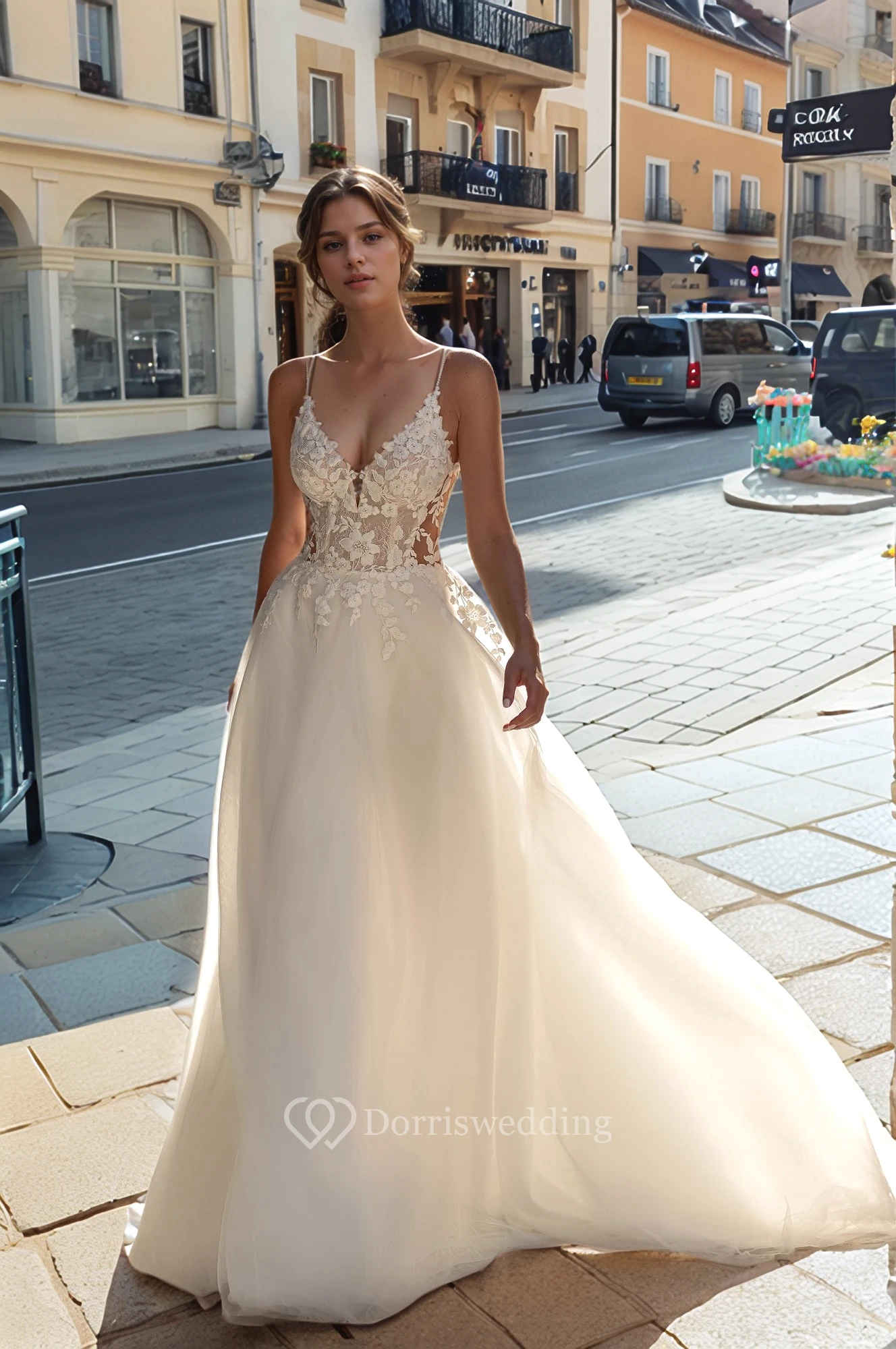 Boho Chic Wedding Dress with Floral Lace Bodice
