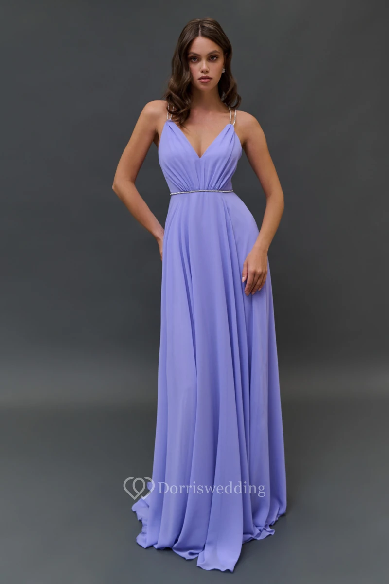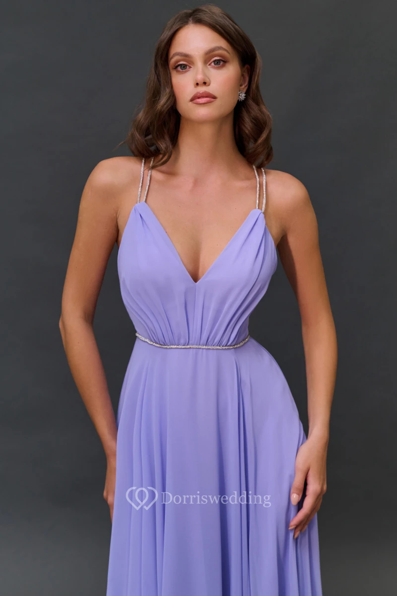 Casual Spaghetti V-neck Chiffon Front Split Dress