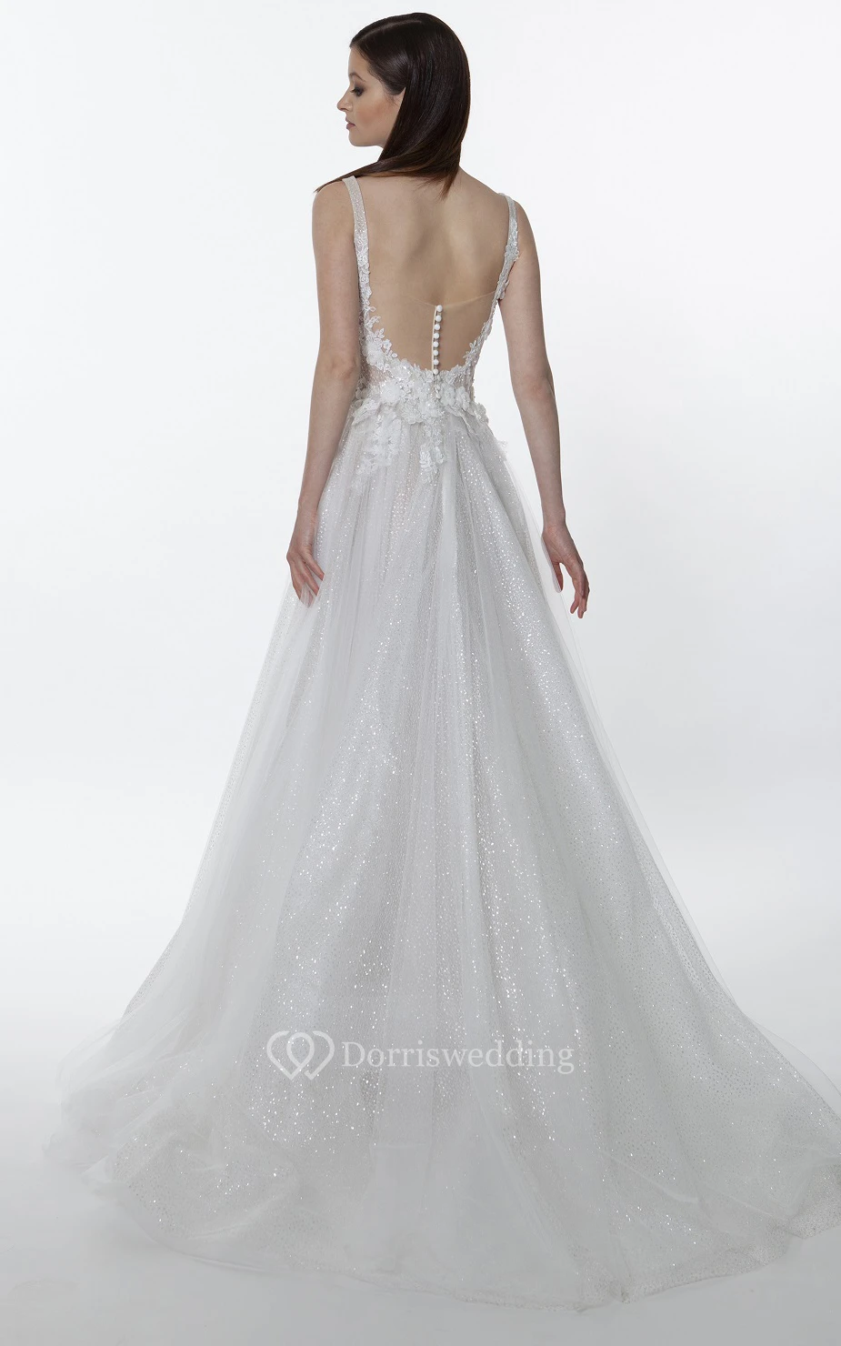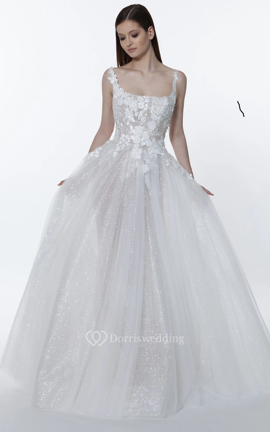 • Hemline/Train: Floor-length, Sweep/Brush Train