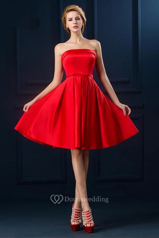 Casual Strapless Knee length Dress with Corset Back