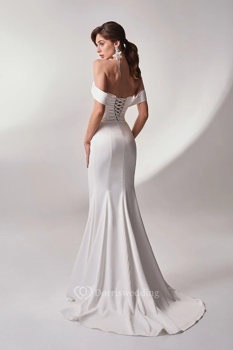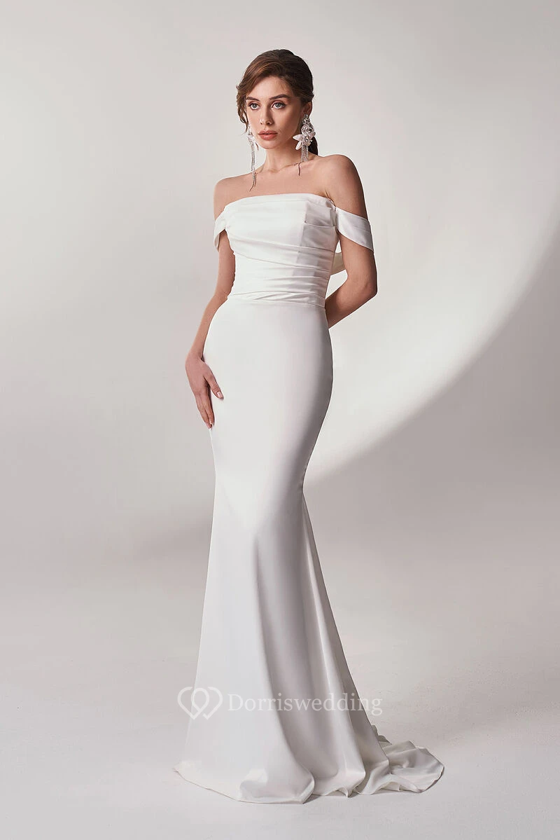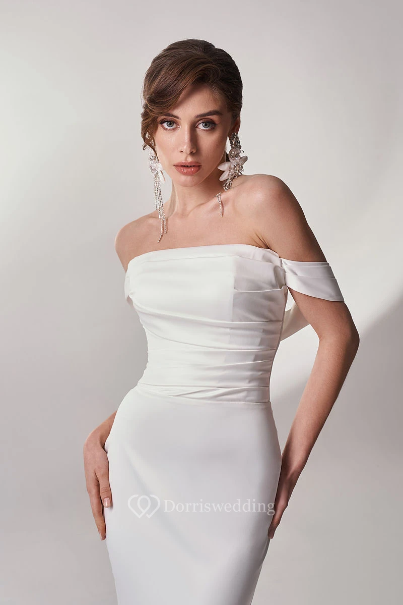 Casual Strapless Ruched Sheath Simple Corset Wedding Dress