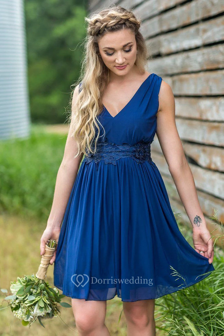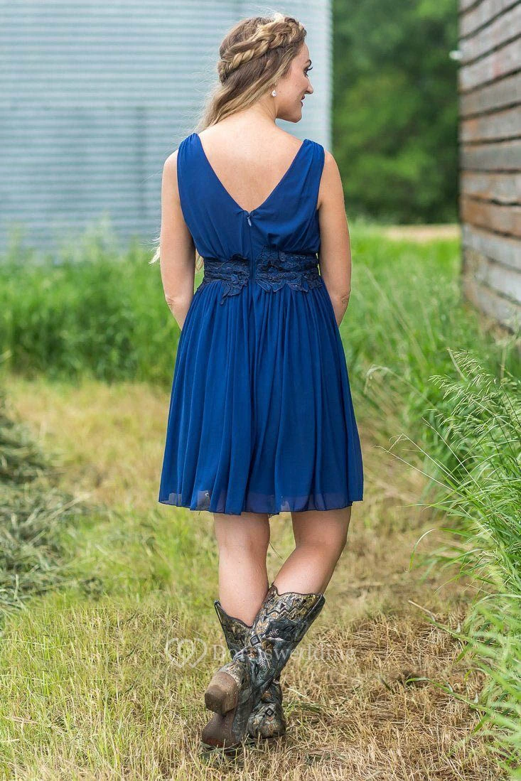 Casual V-neck Sleeveless Short Bridesmaid Dress with Pleats