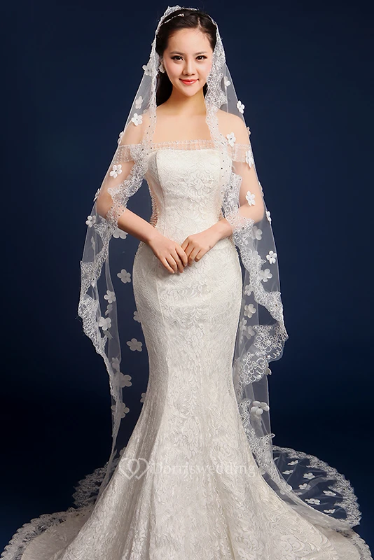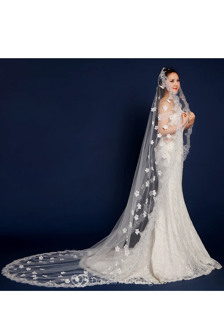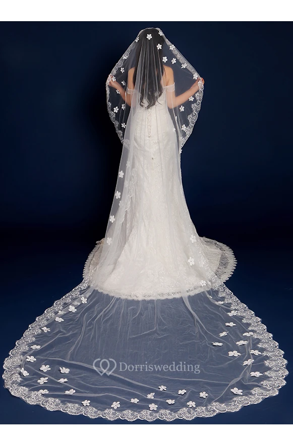 Cathedral Wedding Veil with Flowers and Lace Edge