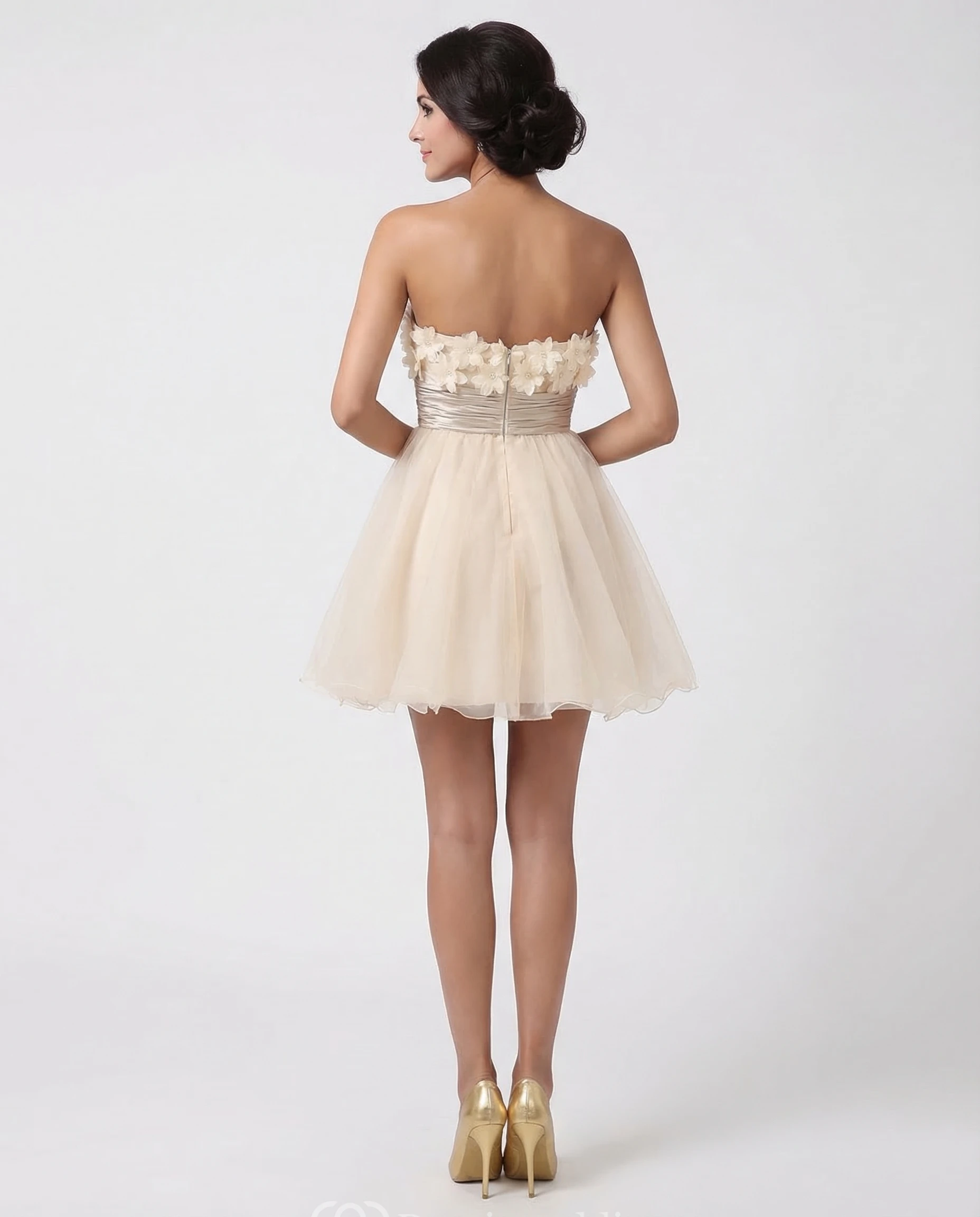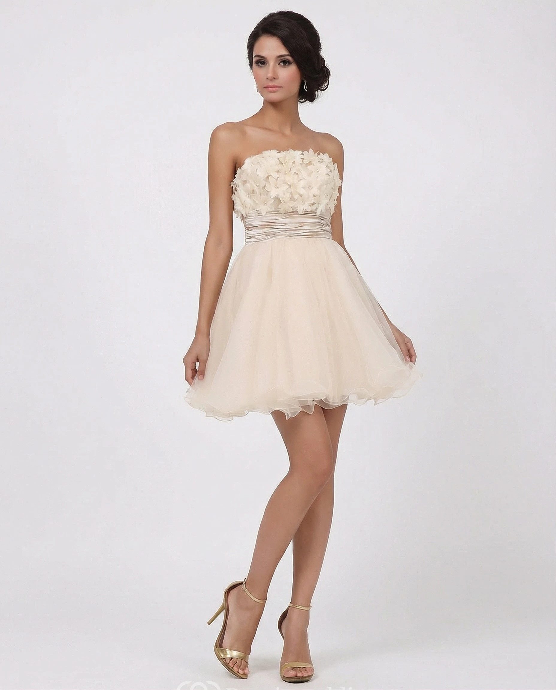 Champagne A-Line Mini Dress with Flowers