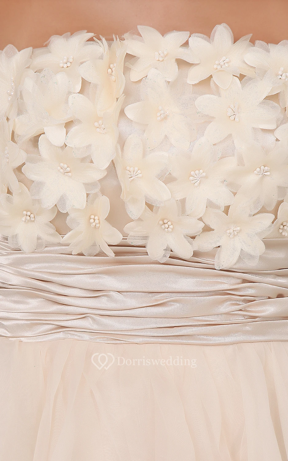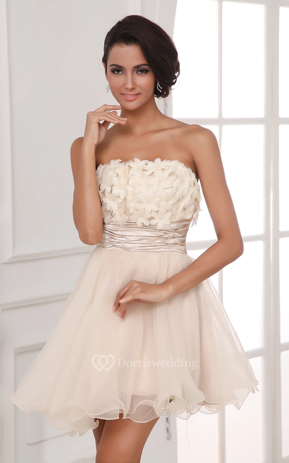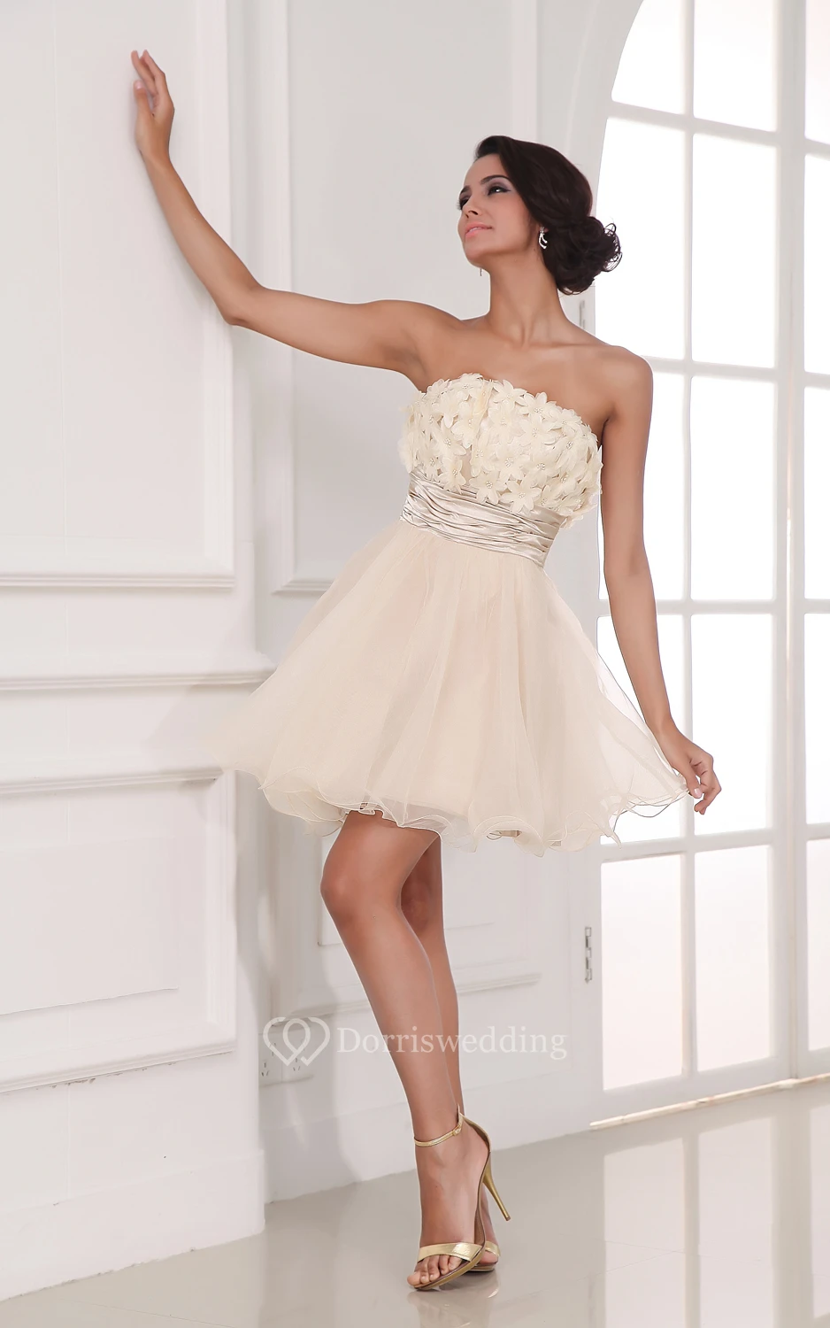 Champagne A-Line Short Dress With Flowers