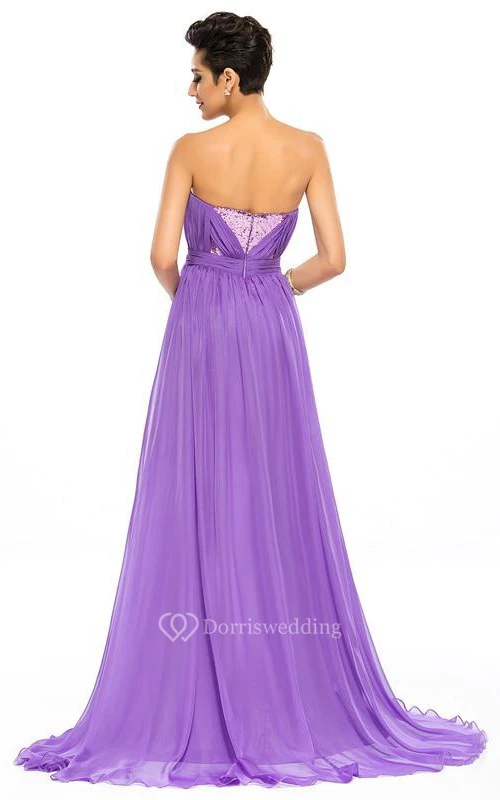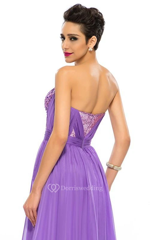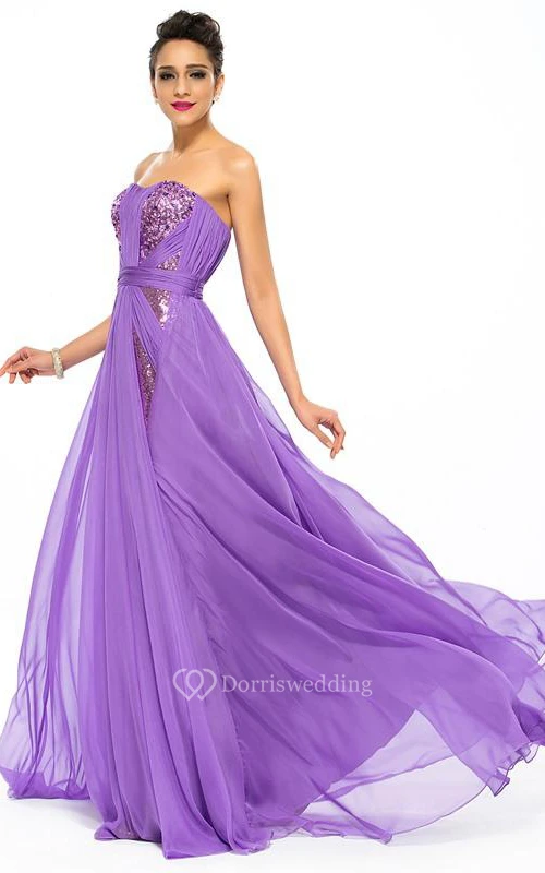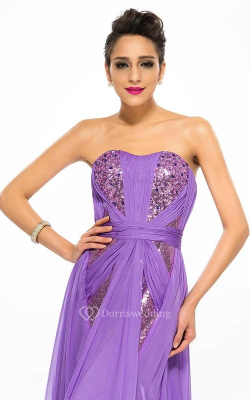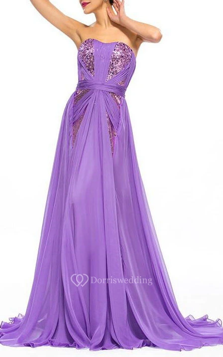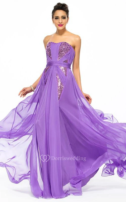Charming A-Line Strapless Sequins Pleats Long Prom Dress