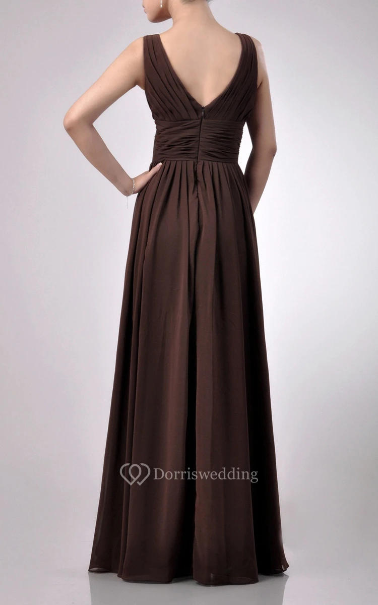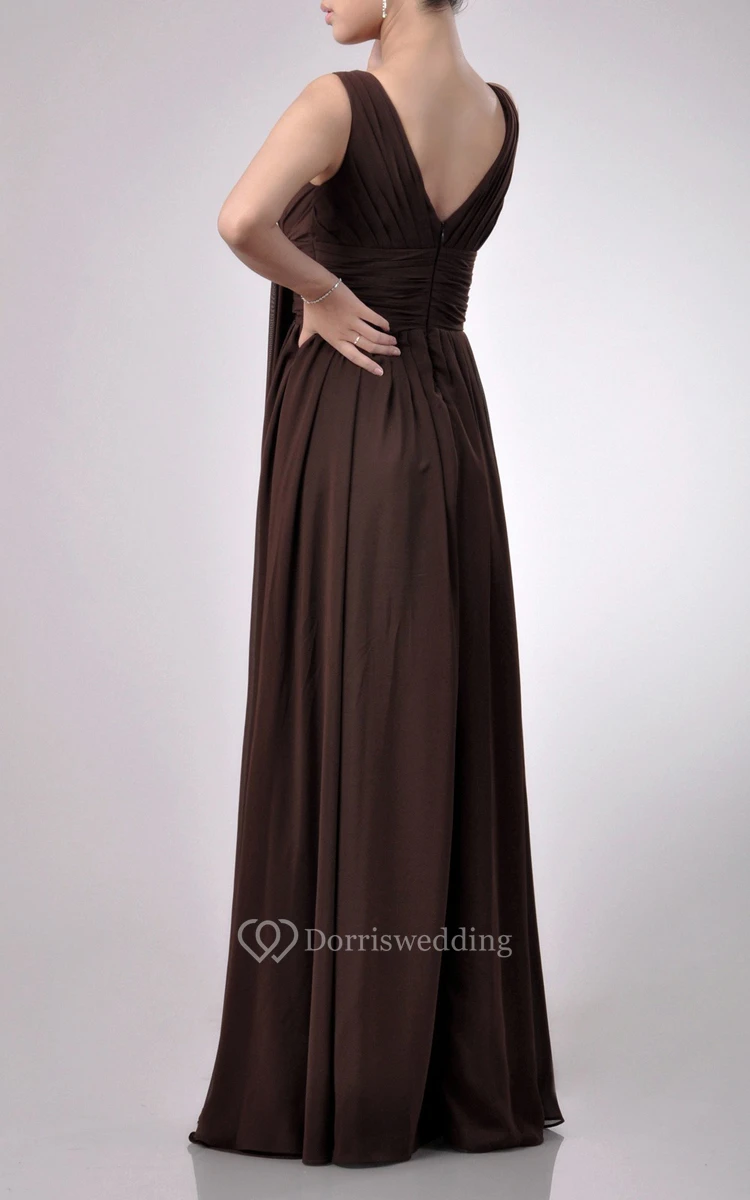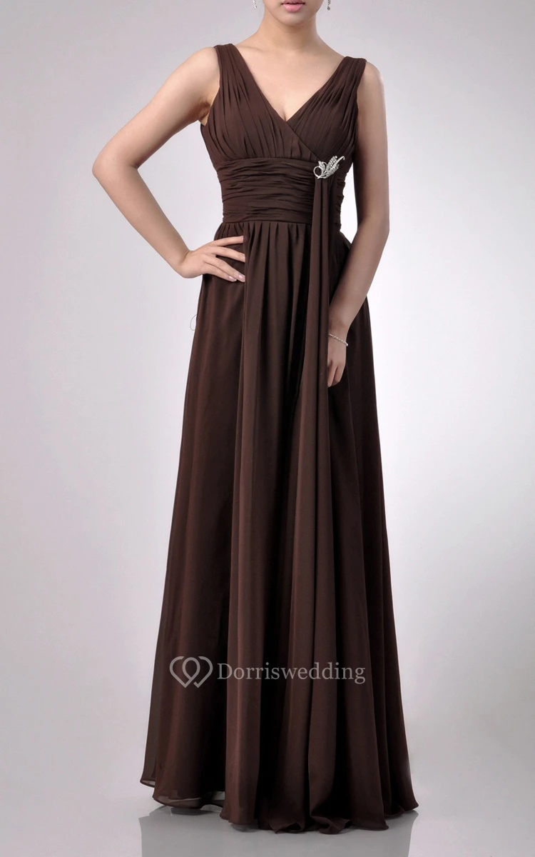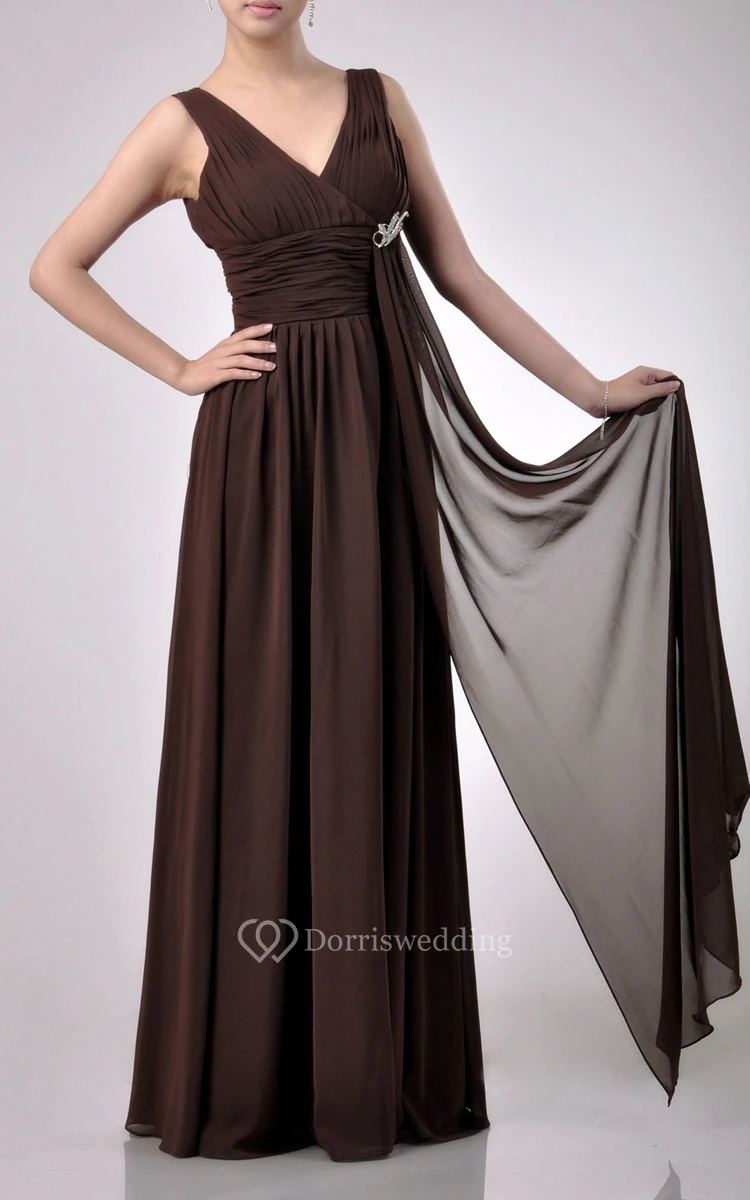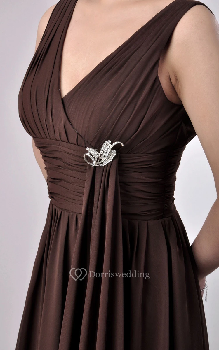 Charming Floor-length V-Neckline Empire Chiffon Bridesmaid Dress With Watteau Train
