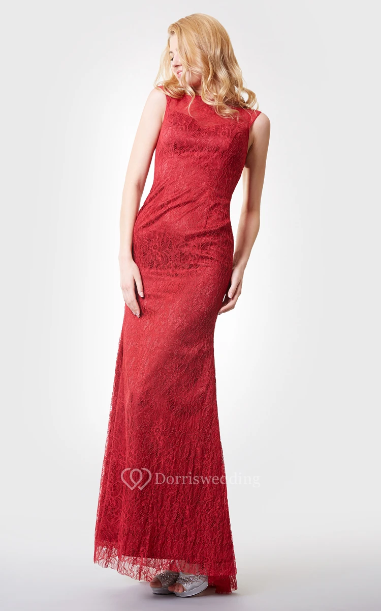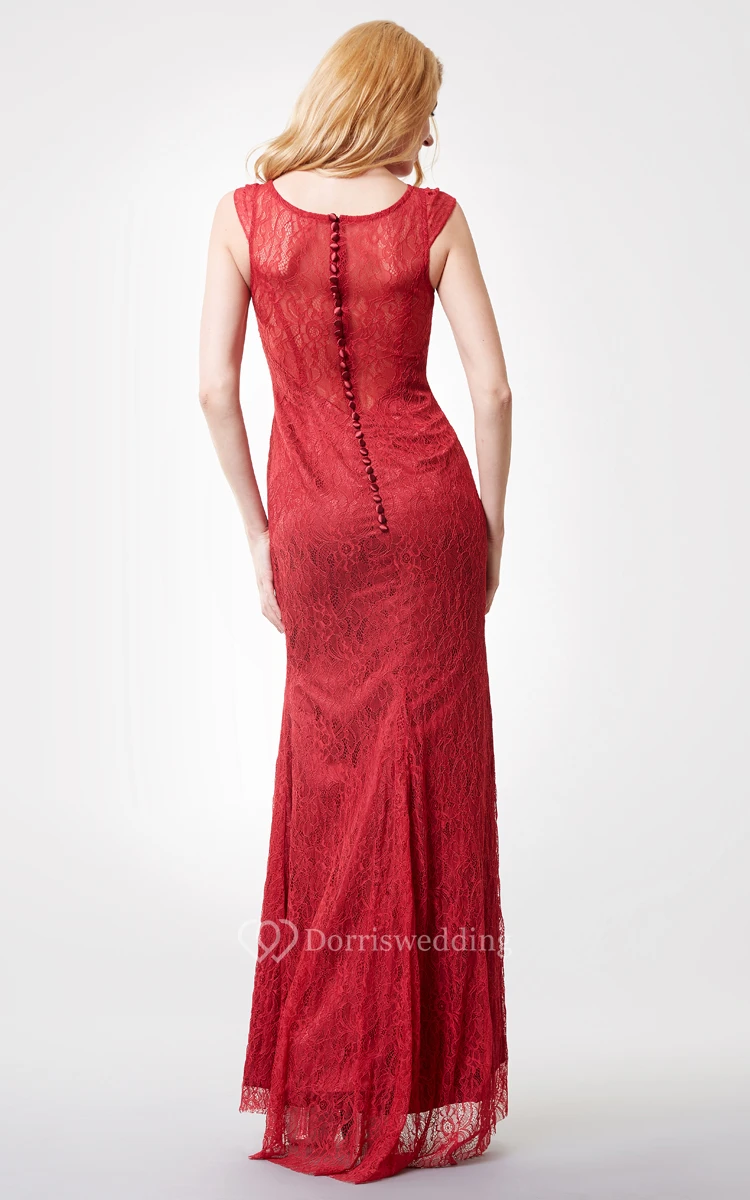 Charming Long Lace Dress With Jewel Neckline