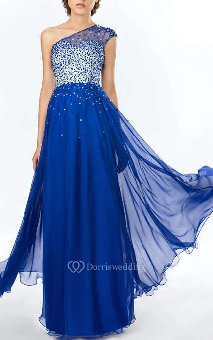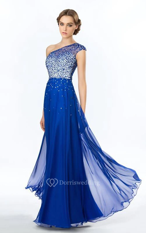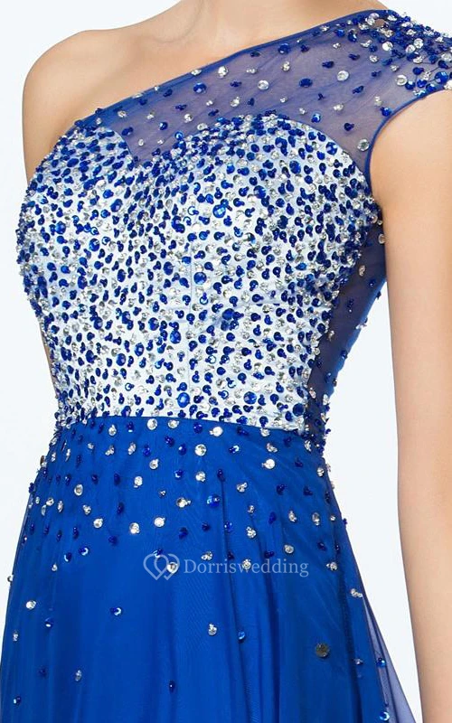 Charming One Shoulder Beading Sequins A-Line Floor Length Prom Dress