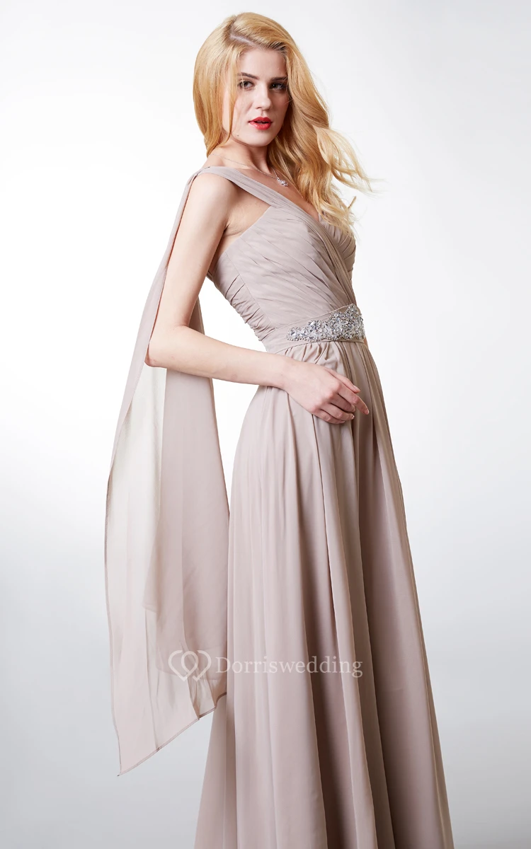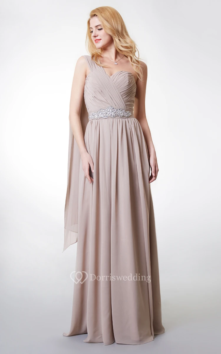 Such a pretty dress in superior quality fabric! Colors are all so bright and beautiful. Ruched bust and beaded waist impart a luxurious look to the simple gown in floor length. I used it as my bridesmaid dress and caught lot of attention.