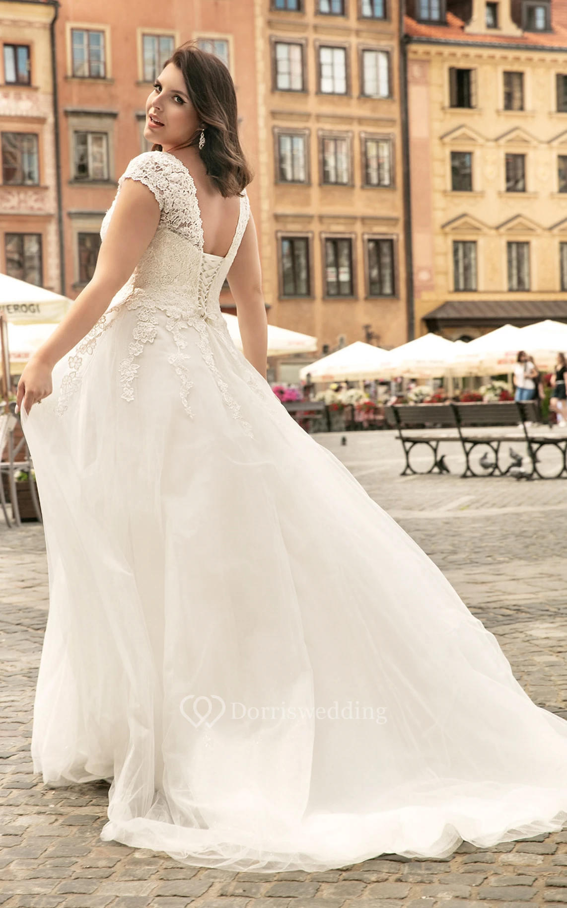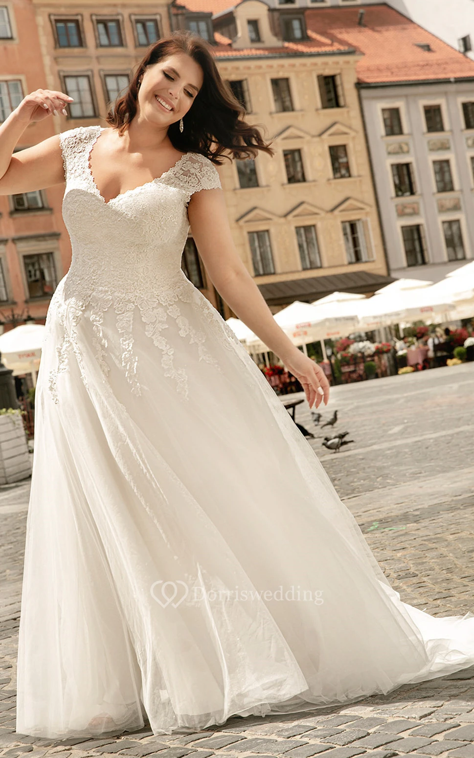 Charming Plus Size V-neck A Line Wedding Dress Styles with Appliques