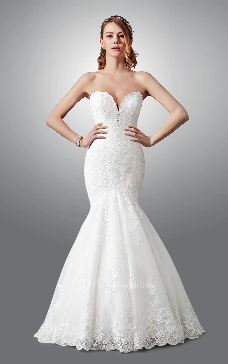 Charming Strapless Mermaid Lace Wedding Dress