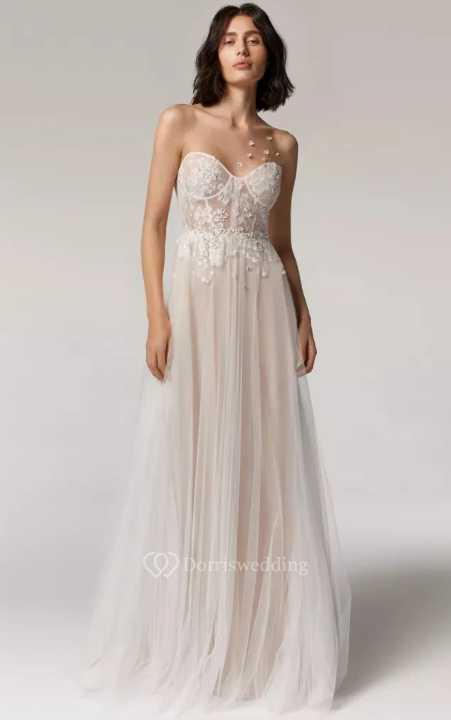 Charming Sweetheart Empire Tulle Wedding Dress with Beadings and Applique