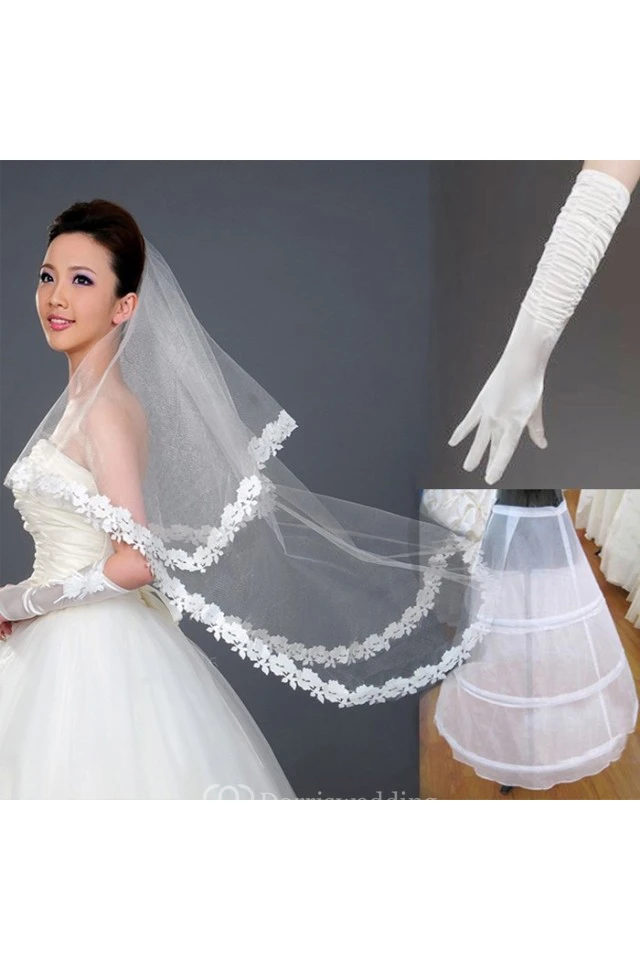 Cheap New Style Wedding Veil Gloves Petticoat Three-Piece Package