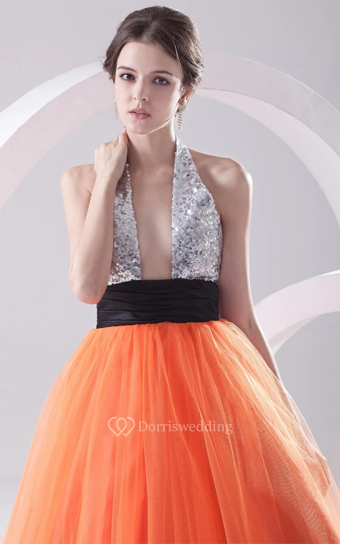 Chic A-Line Sleeveless Ball-Gown With Sequined Top