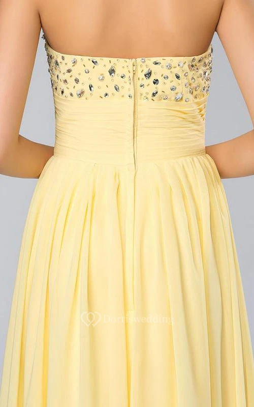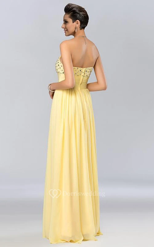 Chic A-line Strapless Beadings Floor-Length Prom Dress