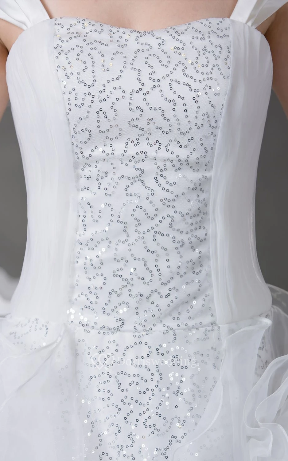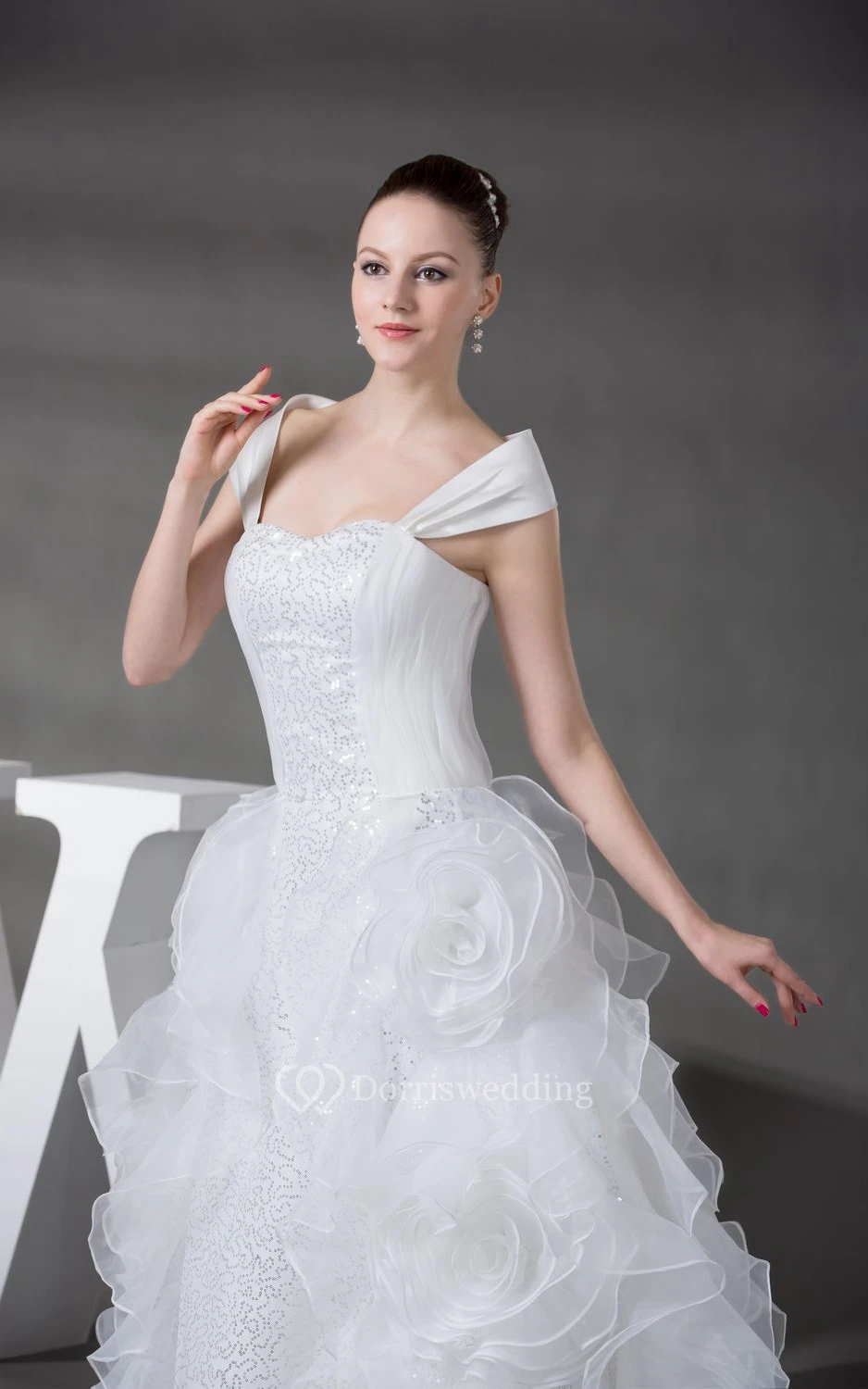 Chic Caped-Sleeve Ruffled A-Line Maxi Dress With Flower and Sequins