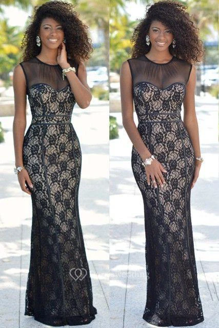 Chic Illusion Mermaid Black Lace Tulle Prom Dress Sleeveless