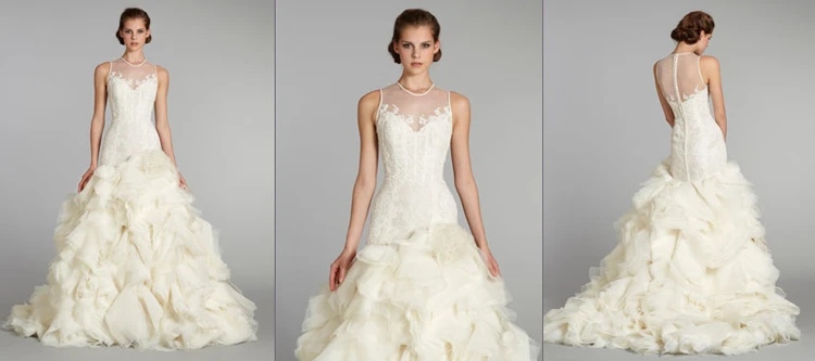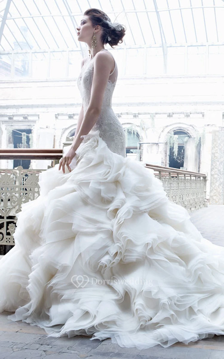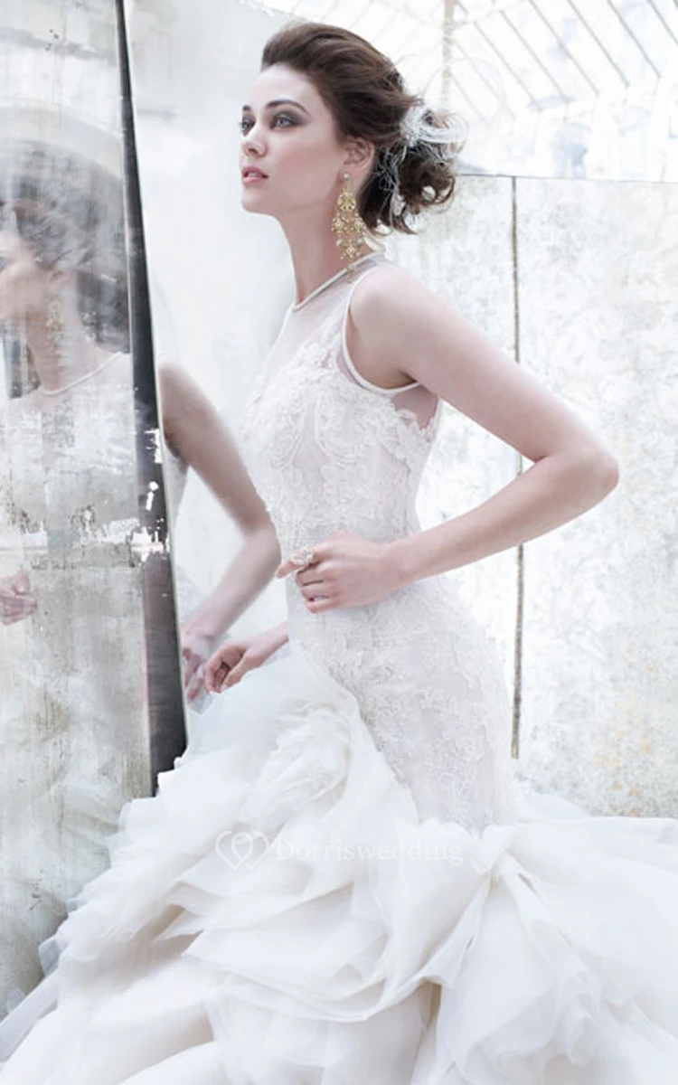 Chic Illusion Neckline Organza Flounce Ball Gown With Lace Bodice