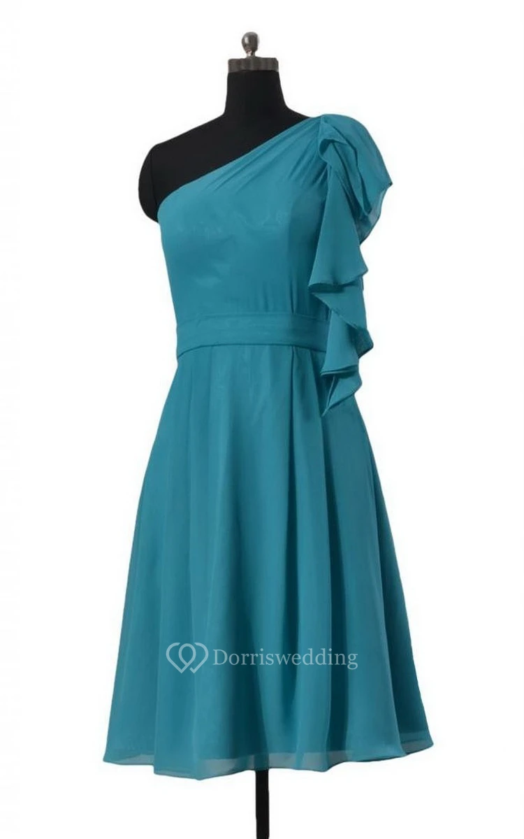Chic One-shoulder Chiffon A-line Gown With Cape