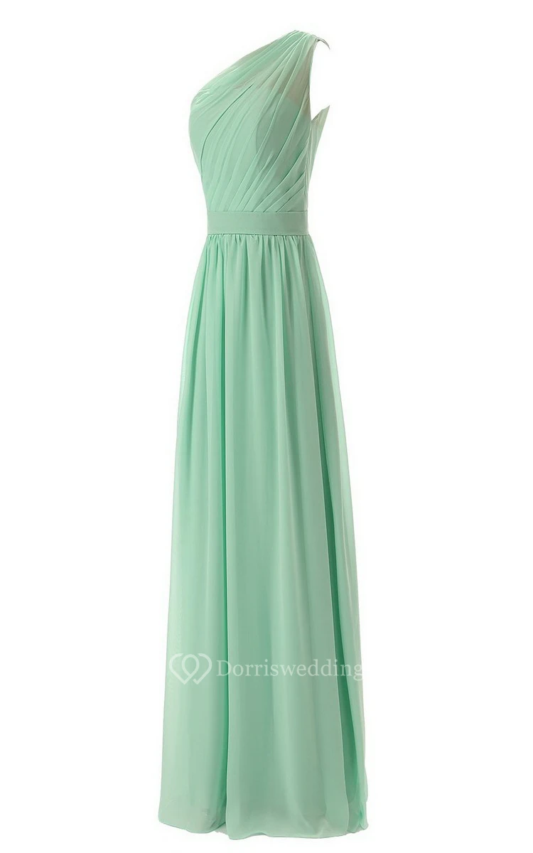 Chic One-shoulder Pleated A-line Gown With Band