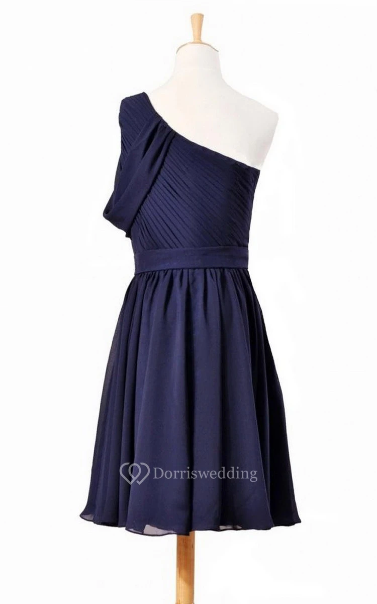 Chic One-shoulder Pleated Short Dress With Drapping