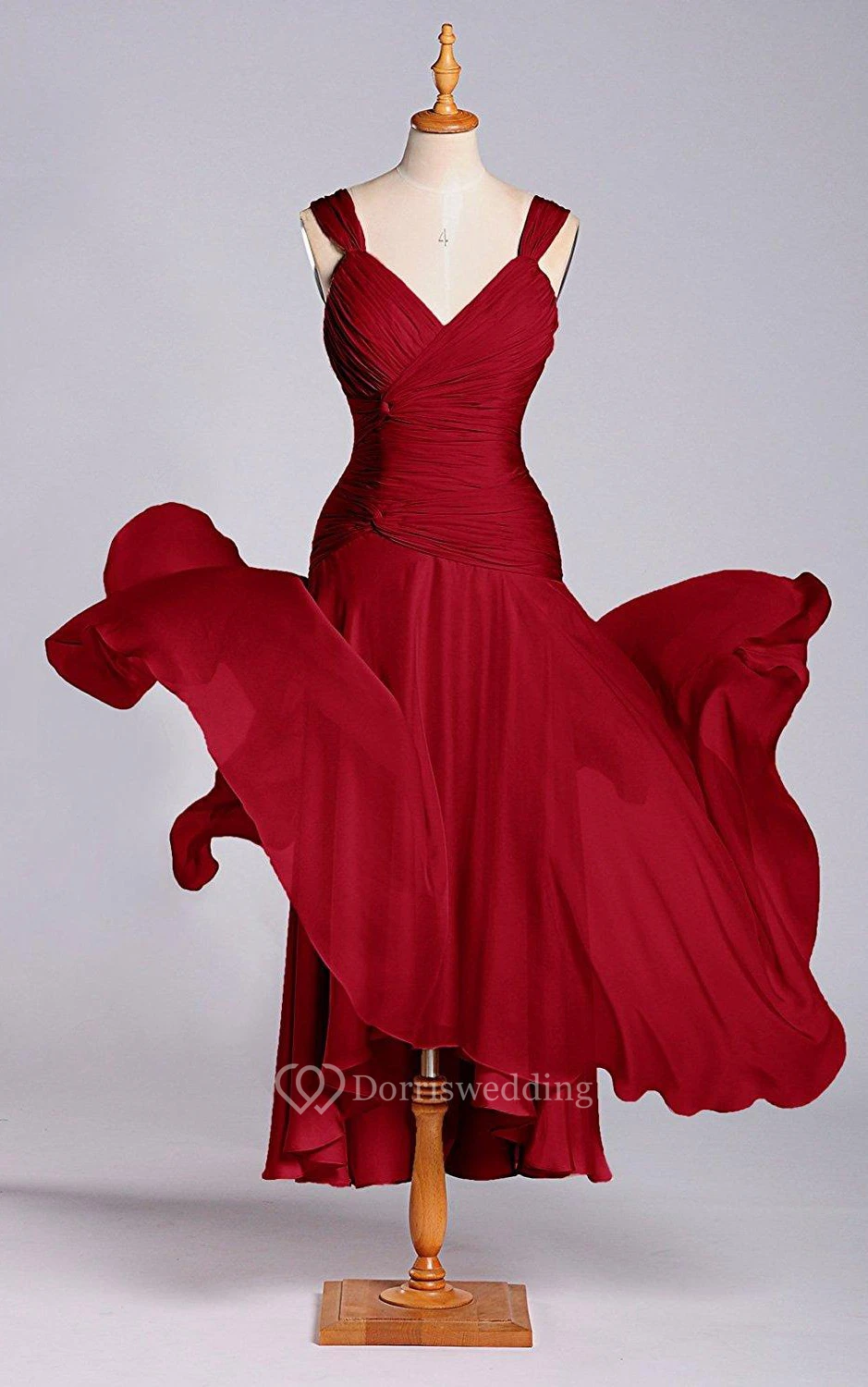 Chic Sleeveless A-line V-neck Chiffon Dress with V-neck