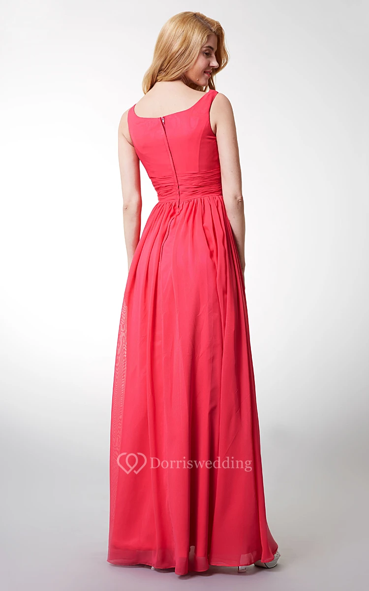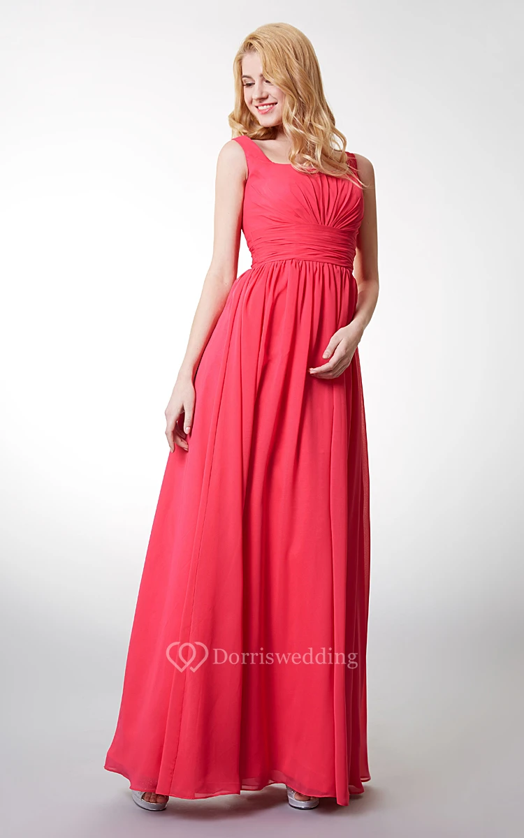 Chic Sleeveless Long Chiffon Dress With Rushing and Square Neckline