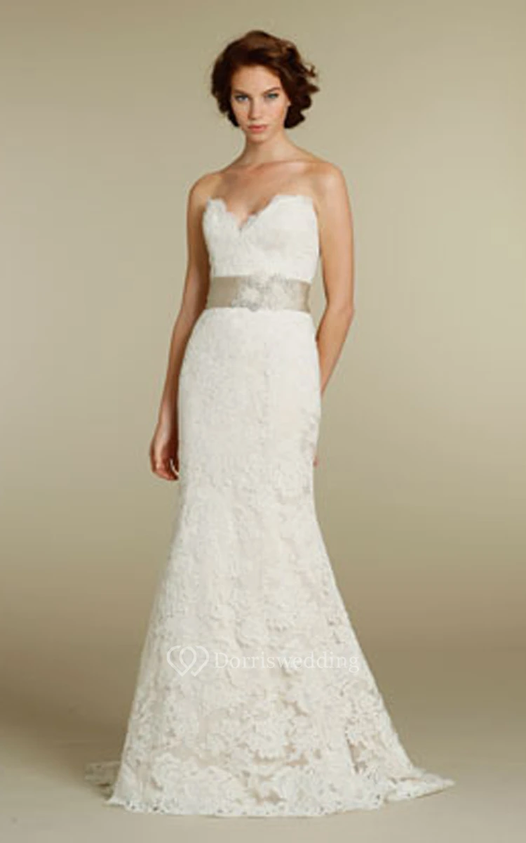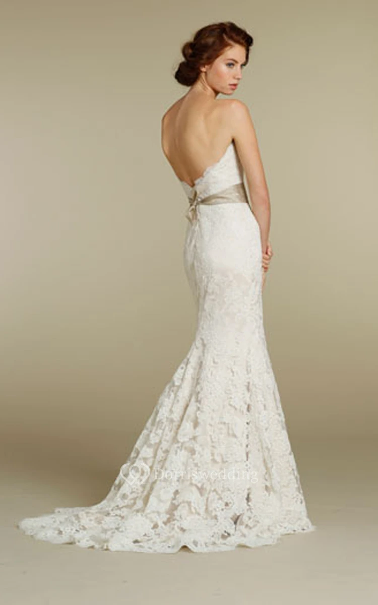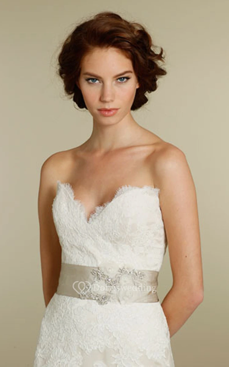 Chic Sweetheart Neckline Lace Over Charmeuse Dress With Appliques and Ribbon