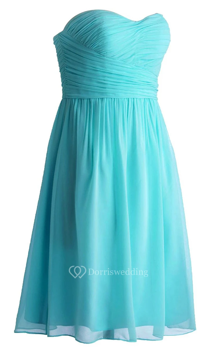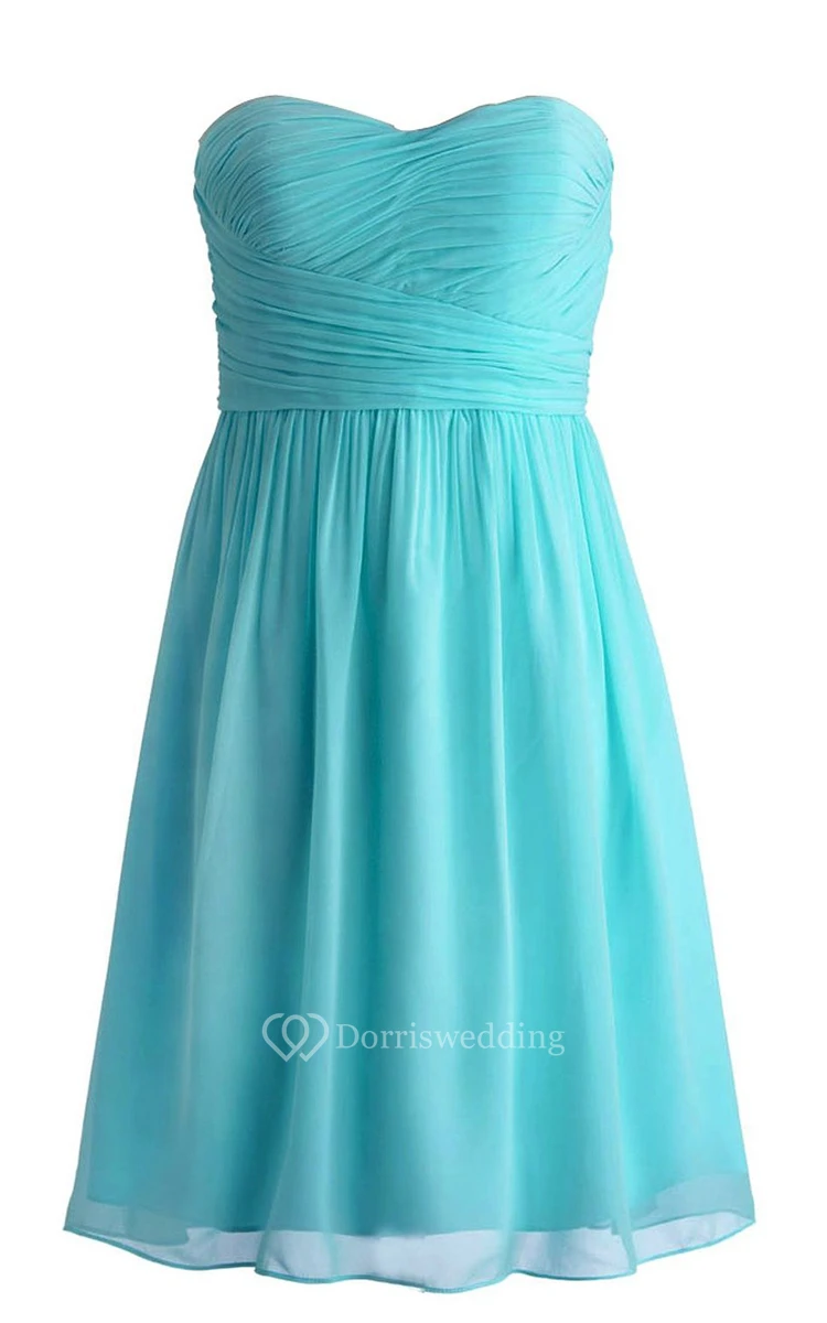Chic Sweetheart Ruched Short Dress With Zipper Back