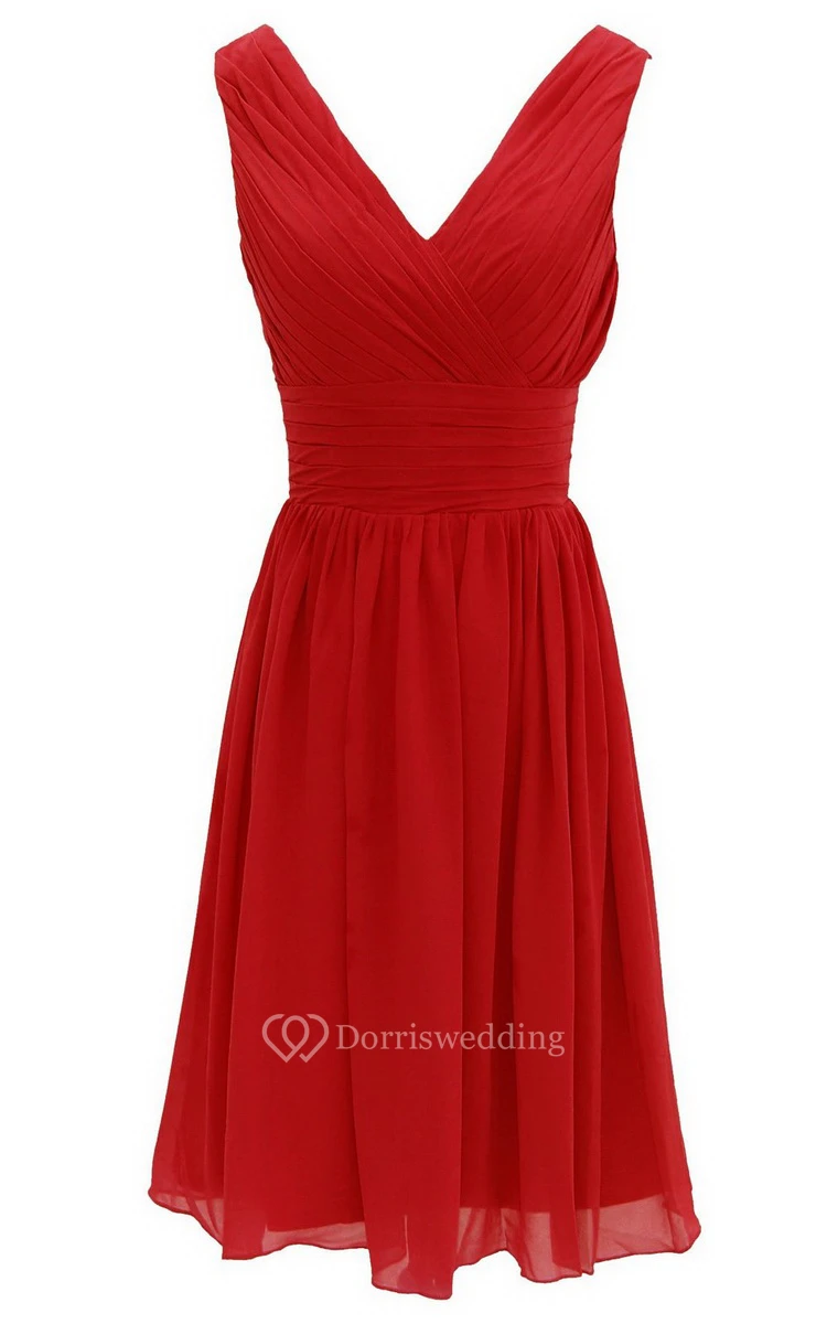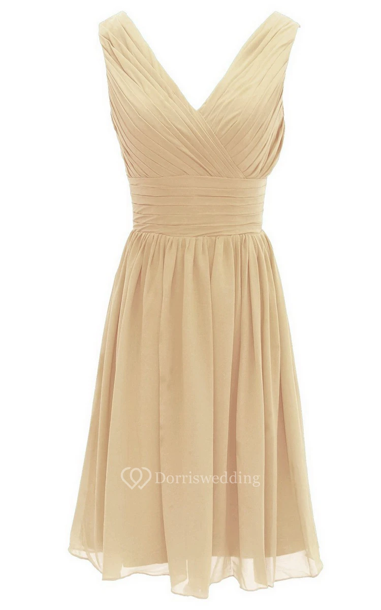 Chic V-neck Pleated A-line Gown With Ruched Band