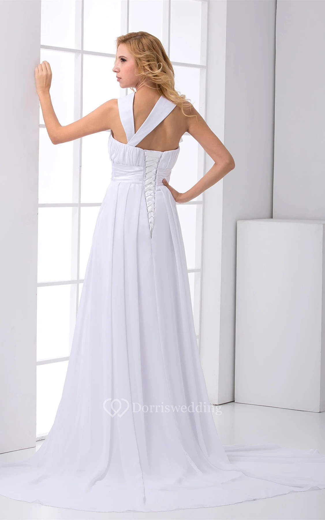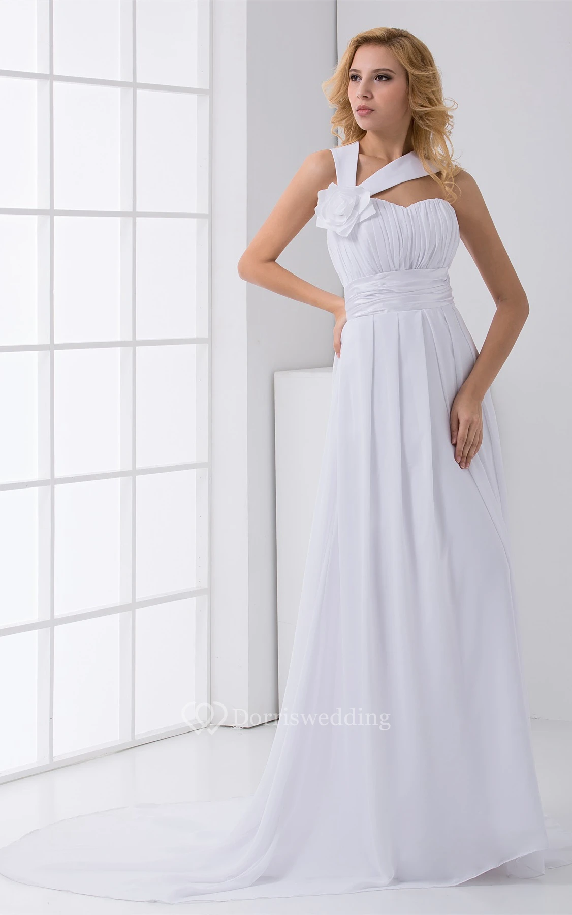 Chiffon A-Line Ruched Pleats and Dress With Flower