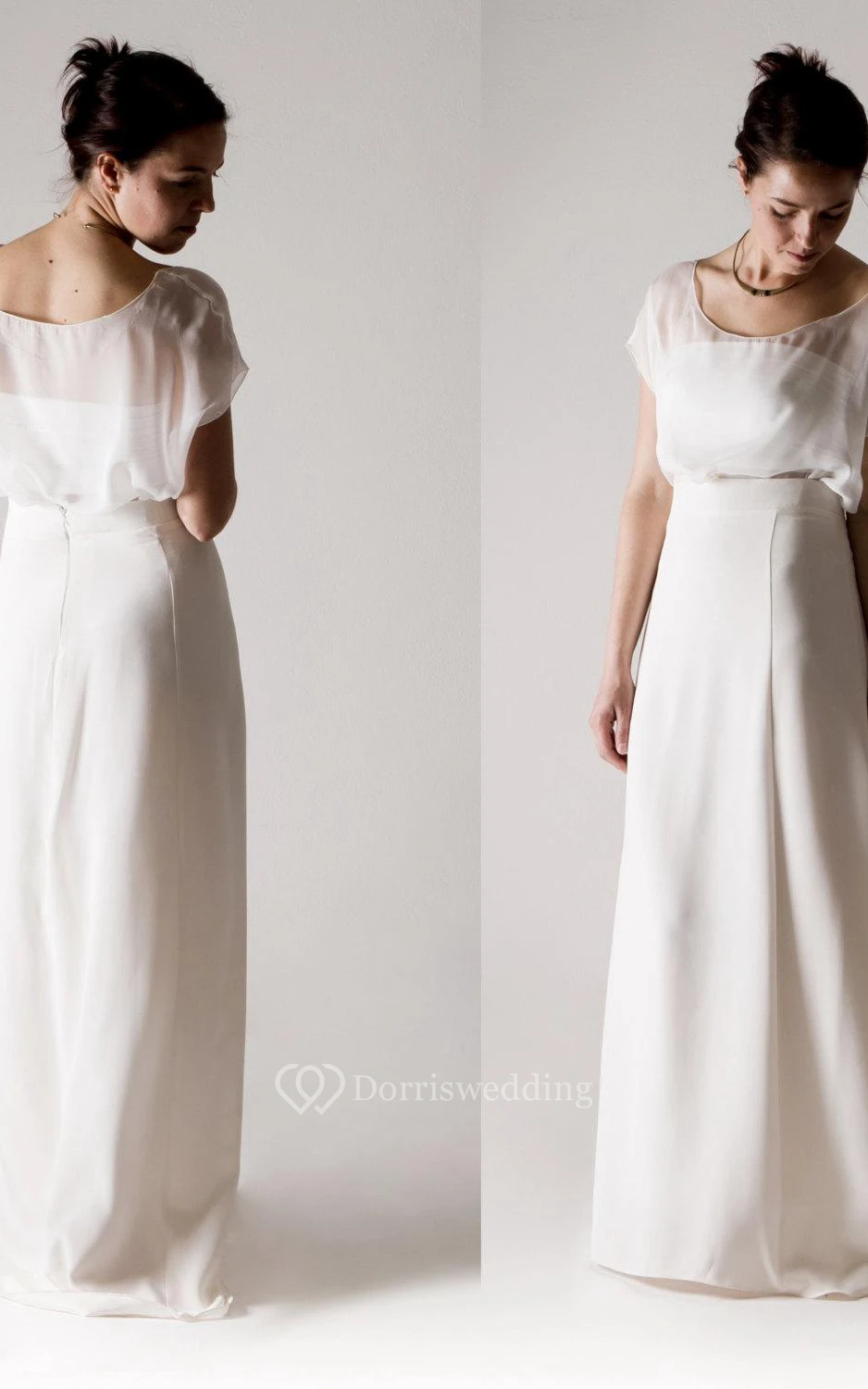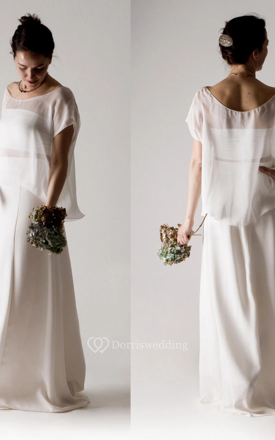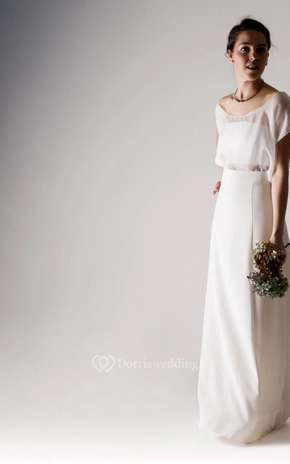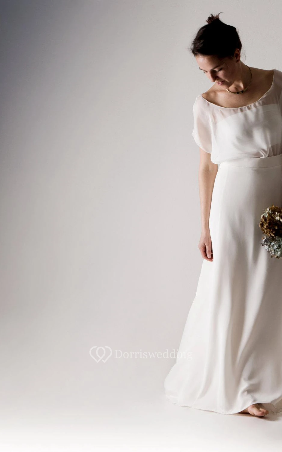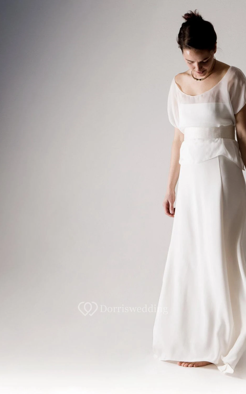 Chiffon A-Line Short Sleeve Two Piece Dress With Scoop Neck