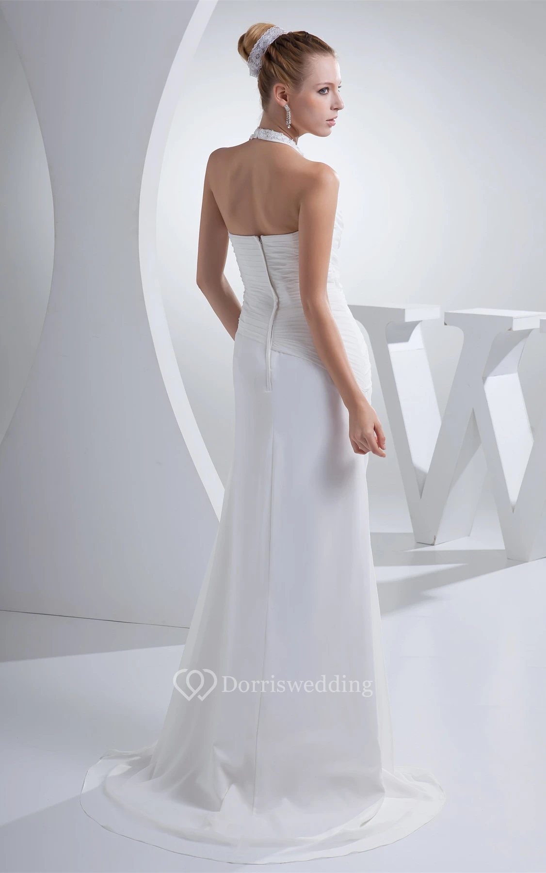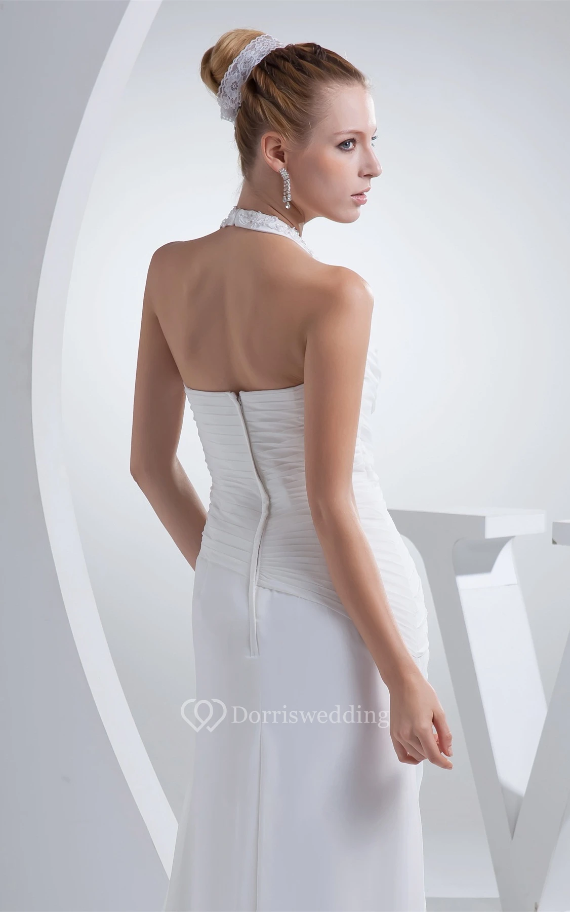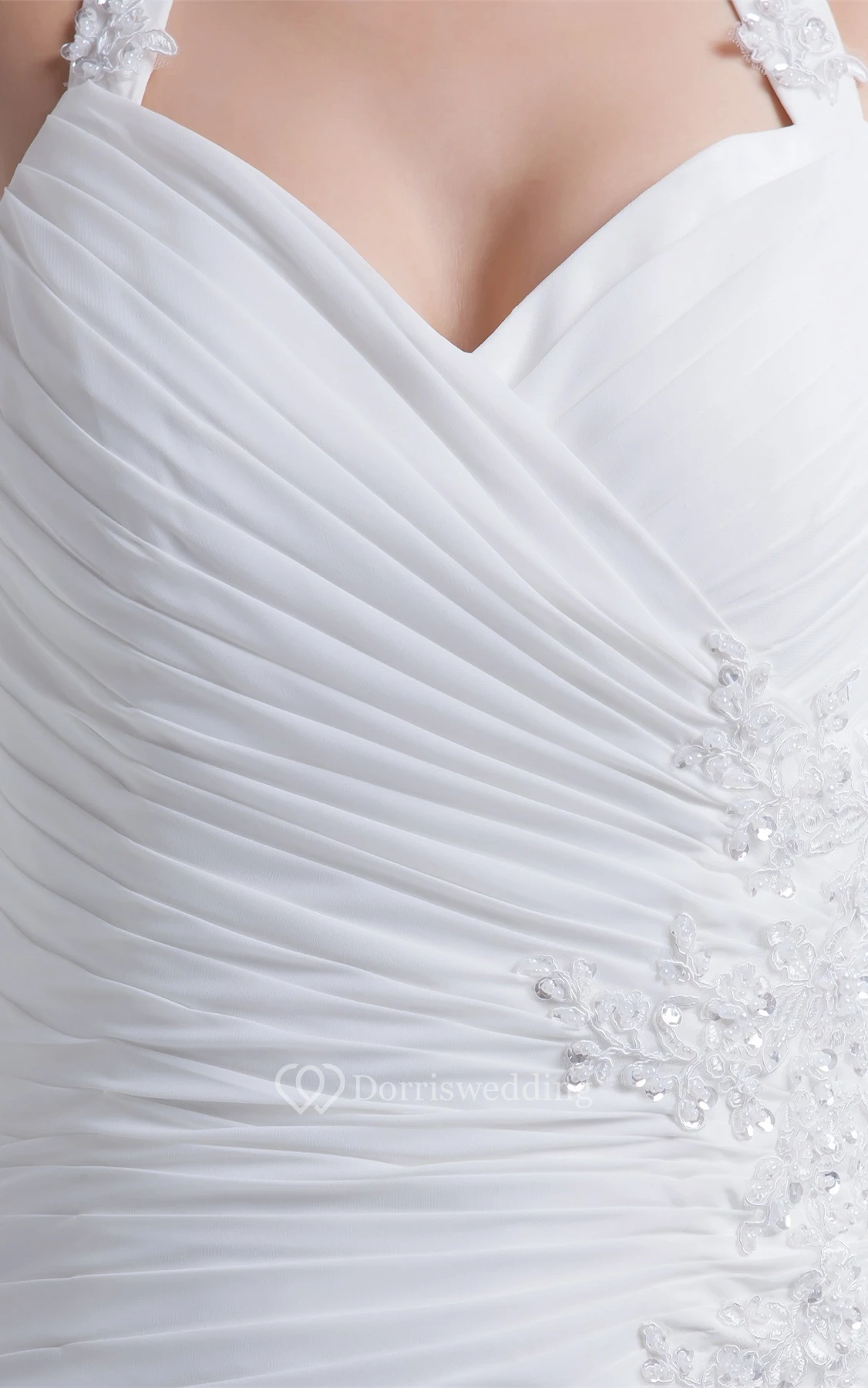 Chiffon Appliqued Floor-Length Ruched Dress With Jeweled Halter