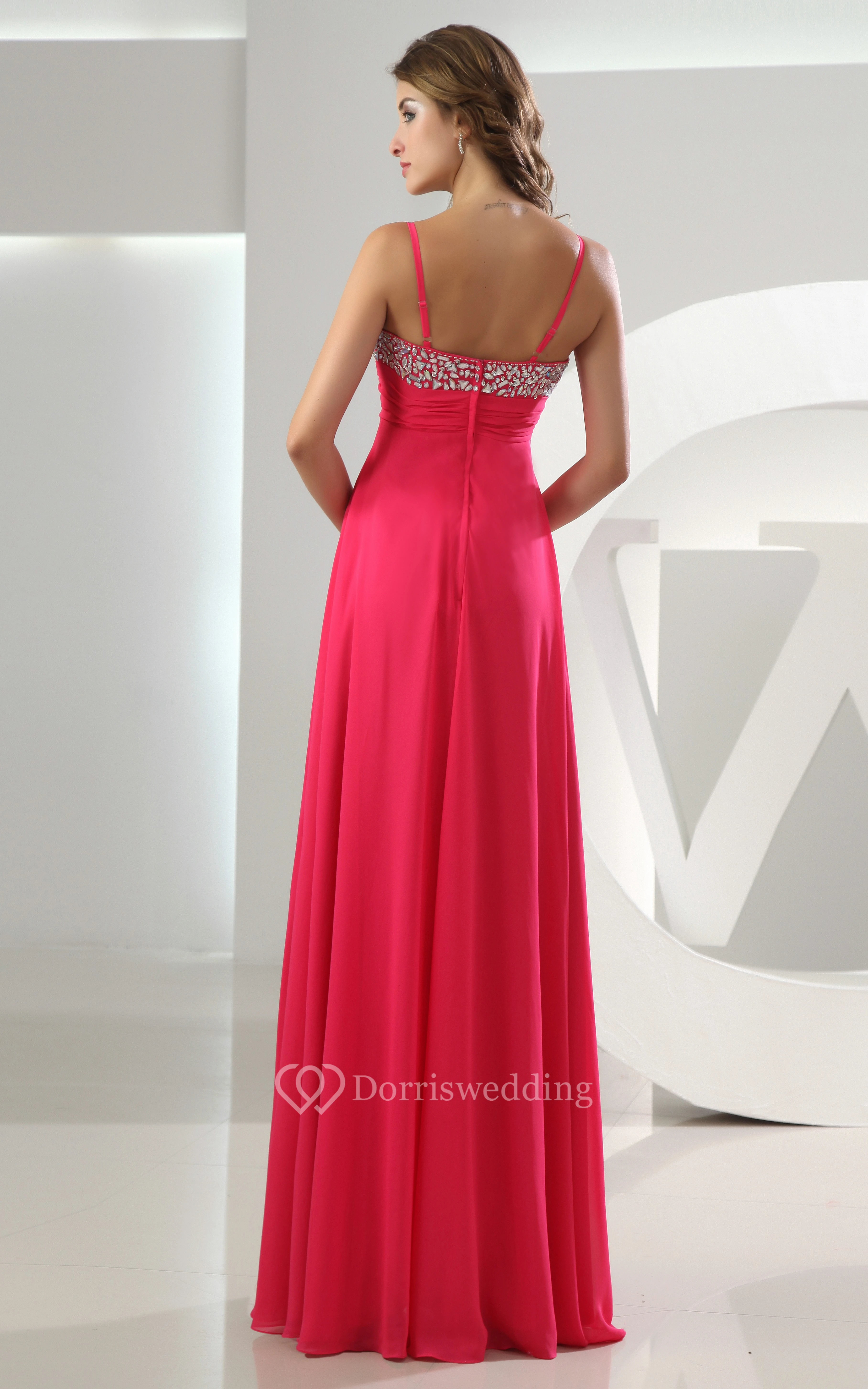 Chiffon Beaded Long Dress With Beaded Top and Spaghetti Straps