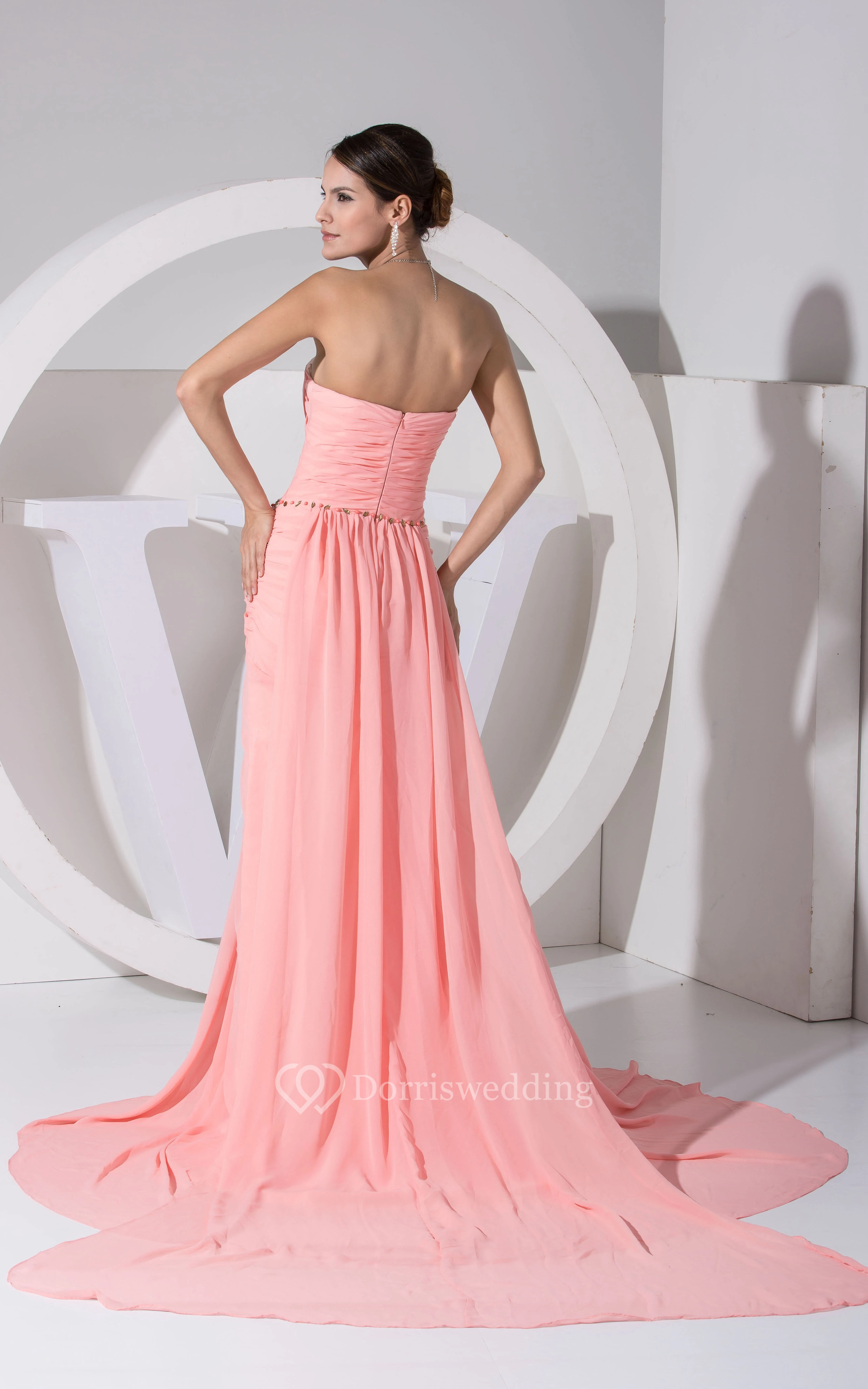 Chiffon Beaded Long Dress With Watteau Train and Ruching