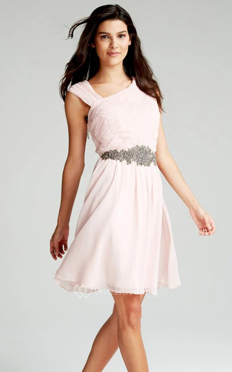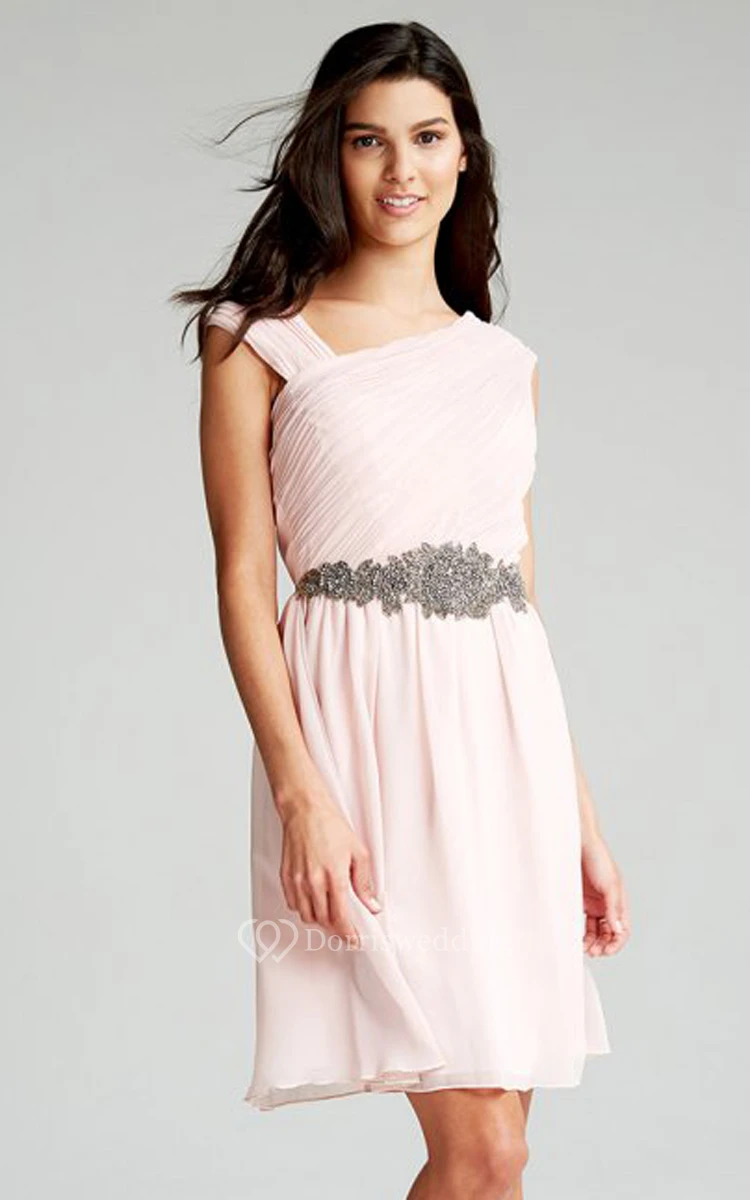 Chiffon Chic Asymmetric Neckline Dress With Sash