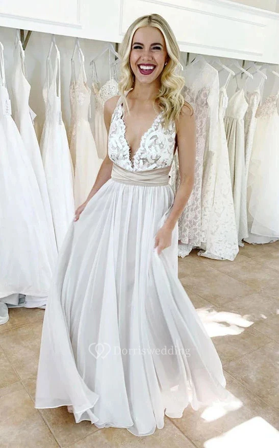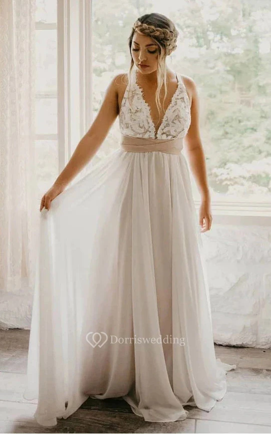 The color shown combines a sand liner with an ivory lace and chiffon overlay. To achieve this exact shade, select "As Shown" when placing your order.