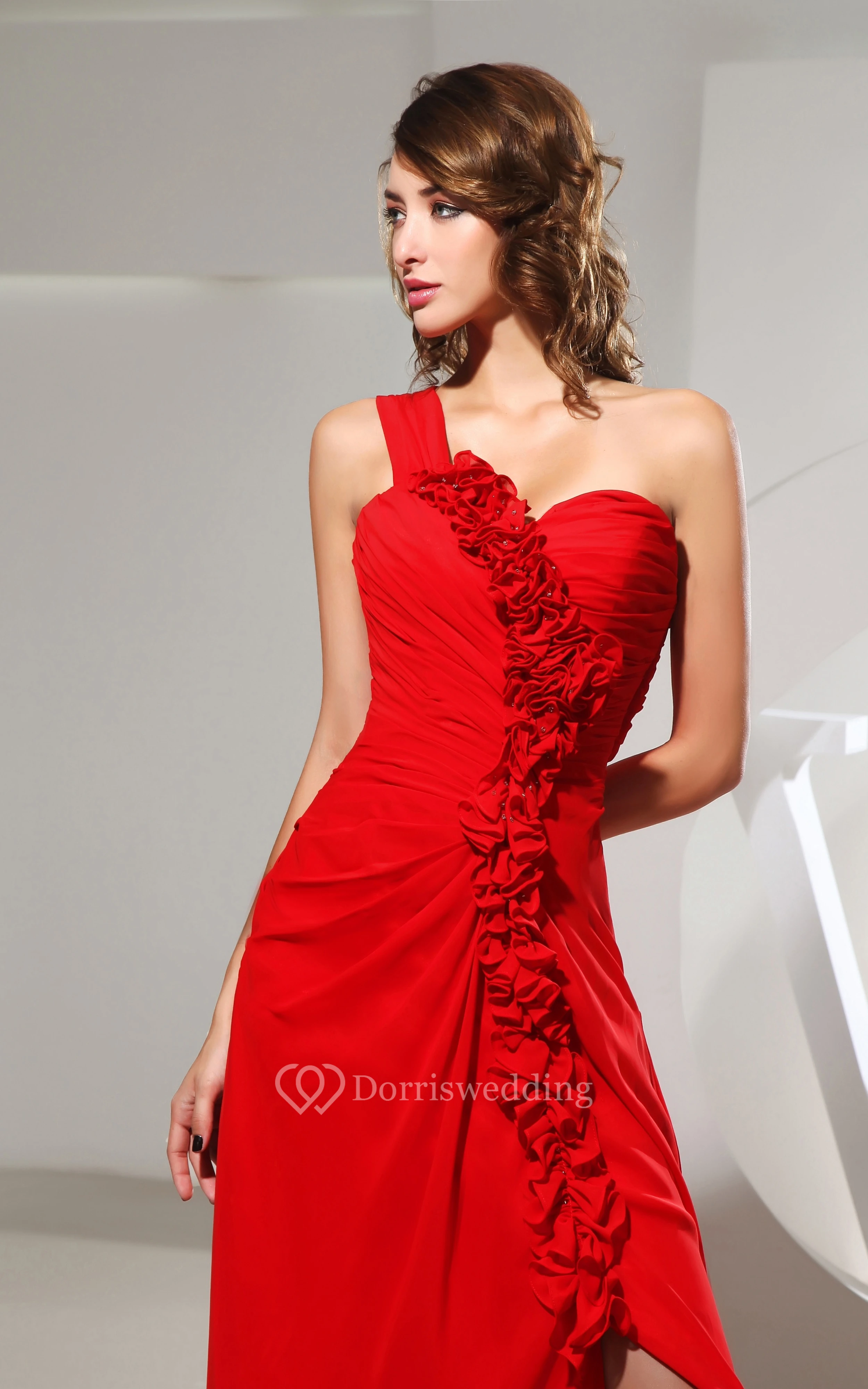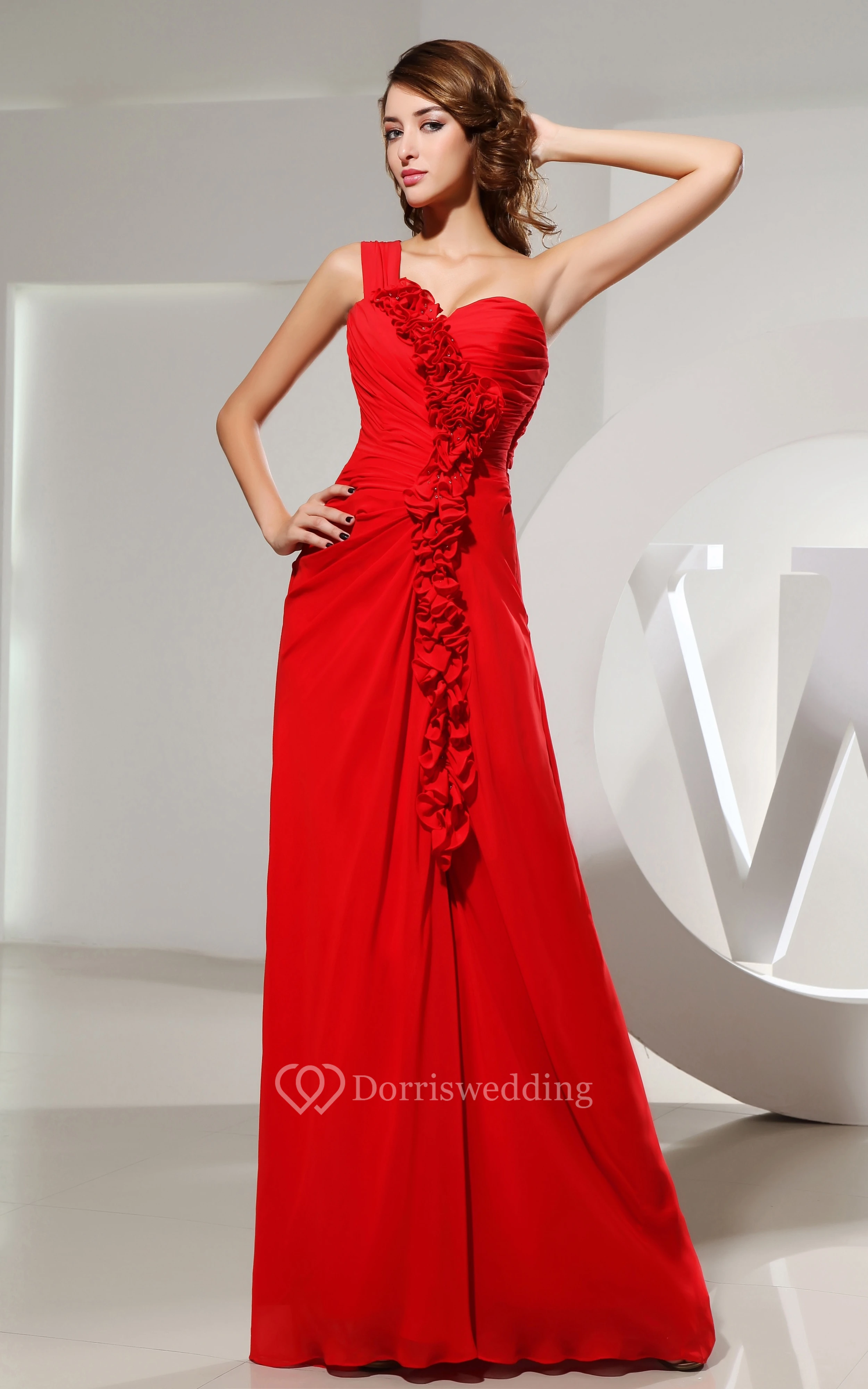 Chiffon Floor-Length Dress With Floral Straps and Criss-Cross Ruching
