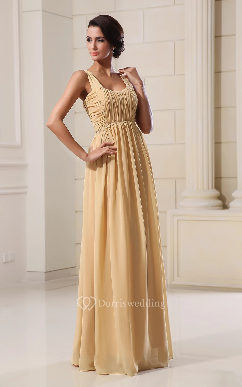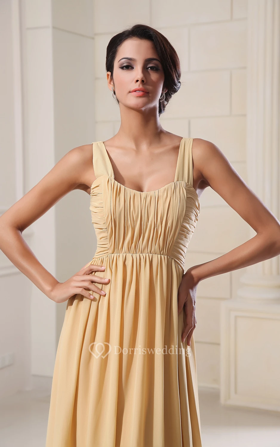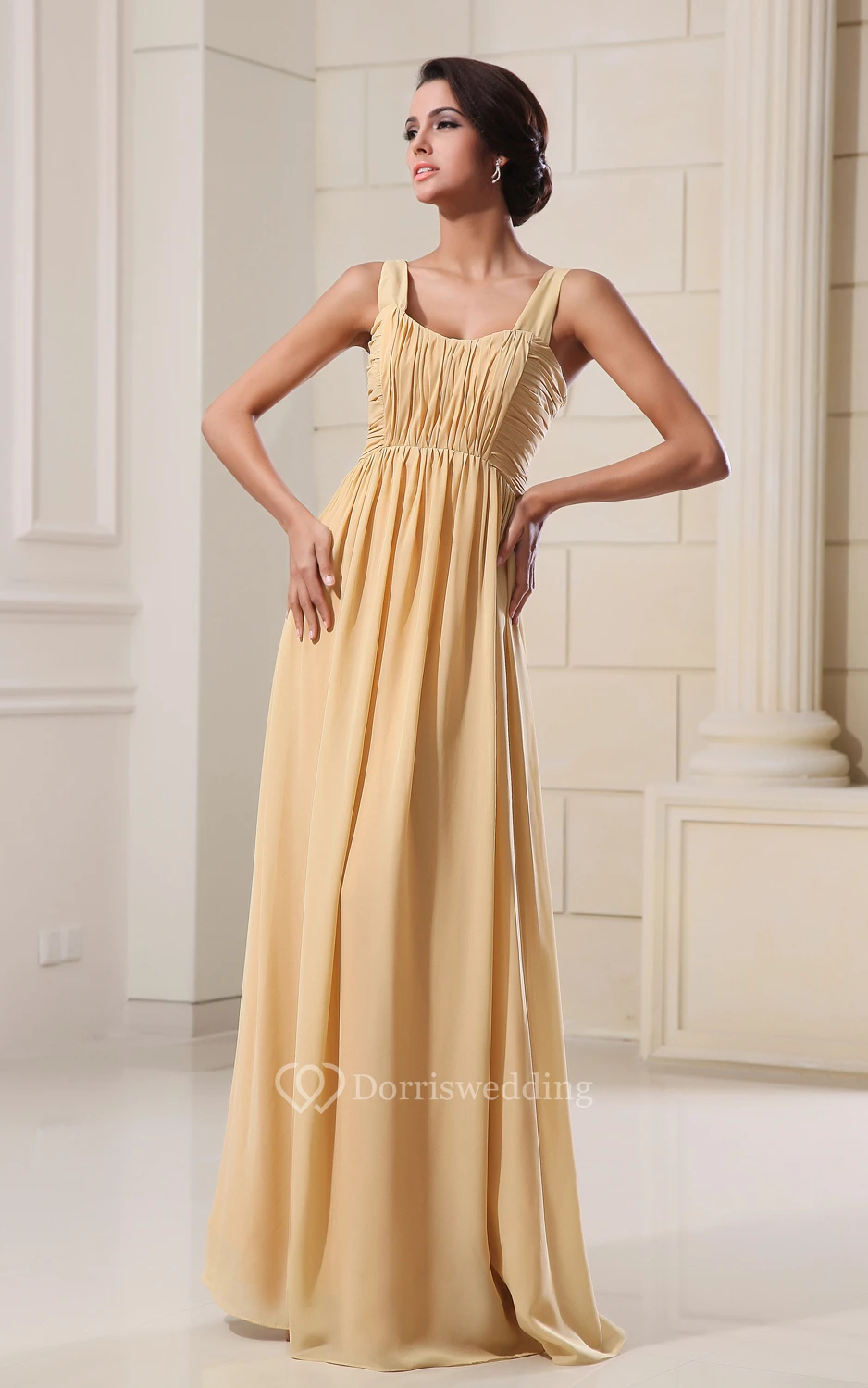 Chiffon Floor-Length Dress With Square-Neck and Pleating
