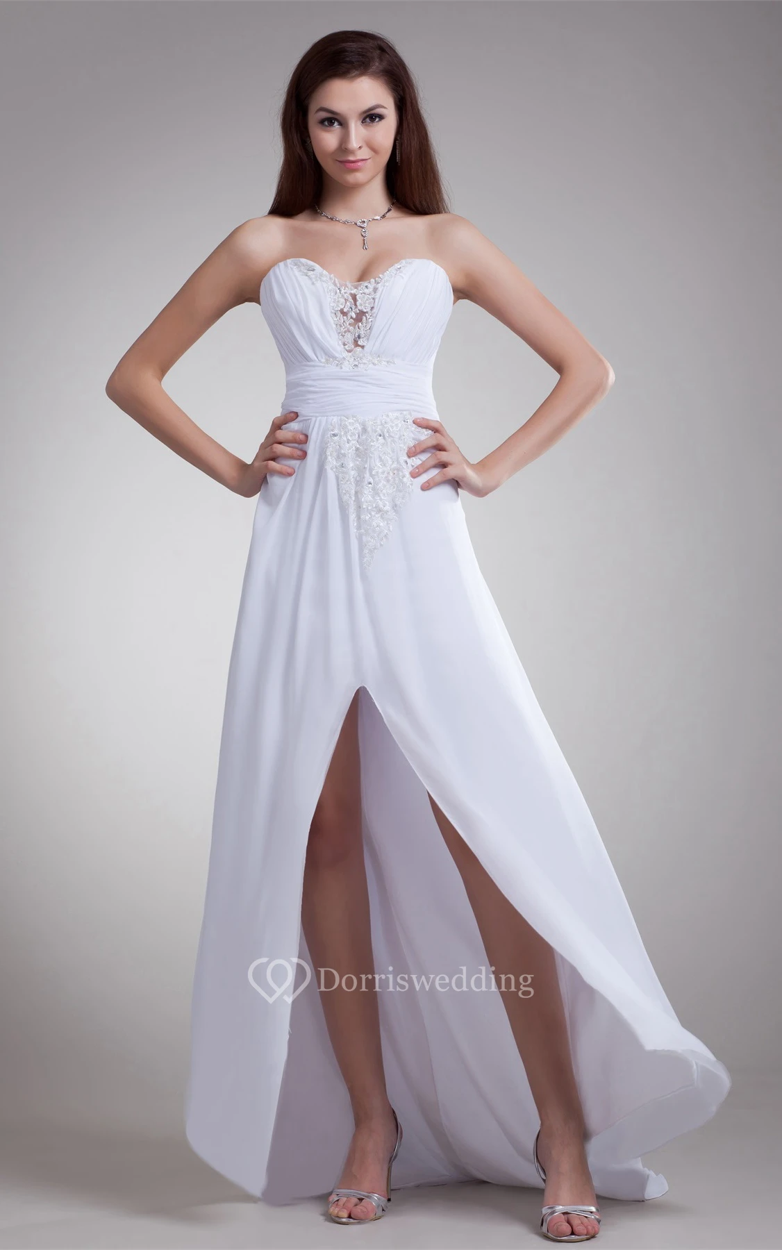 Chiffon Front-Split Sweetheart Beading and Dress With Lace