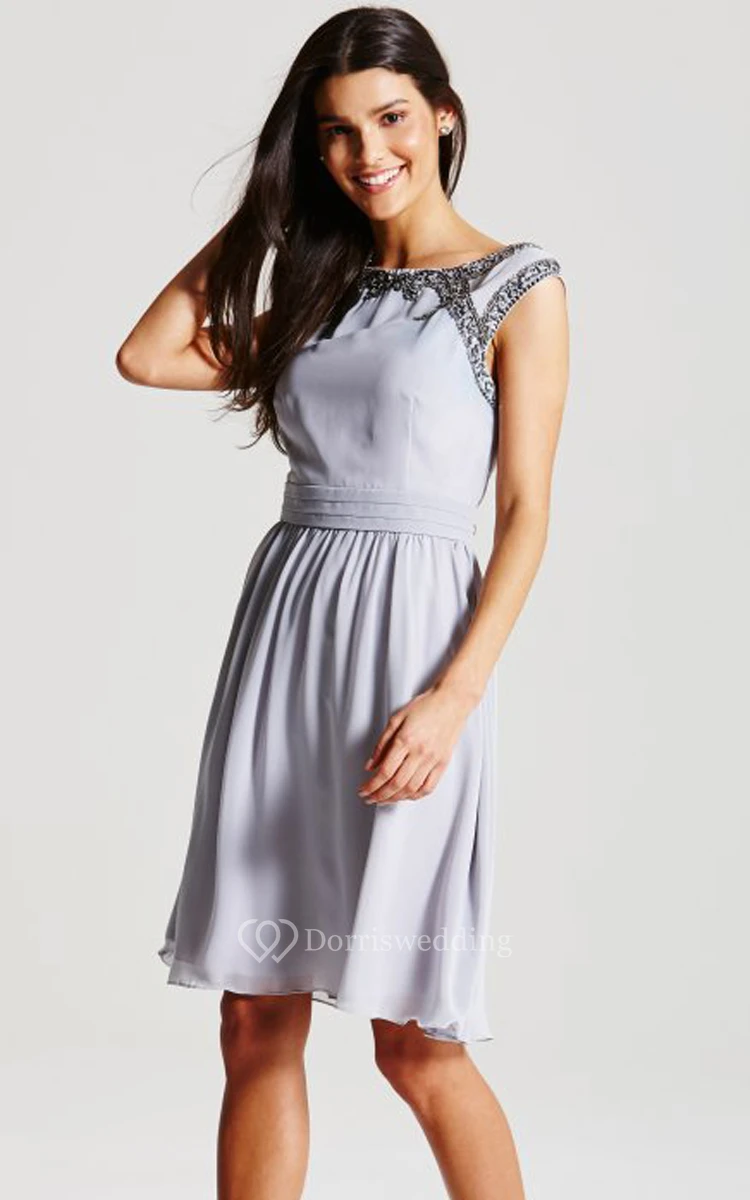 Chiffon Knee-Length A-Line Dress With Beading Details