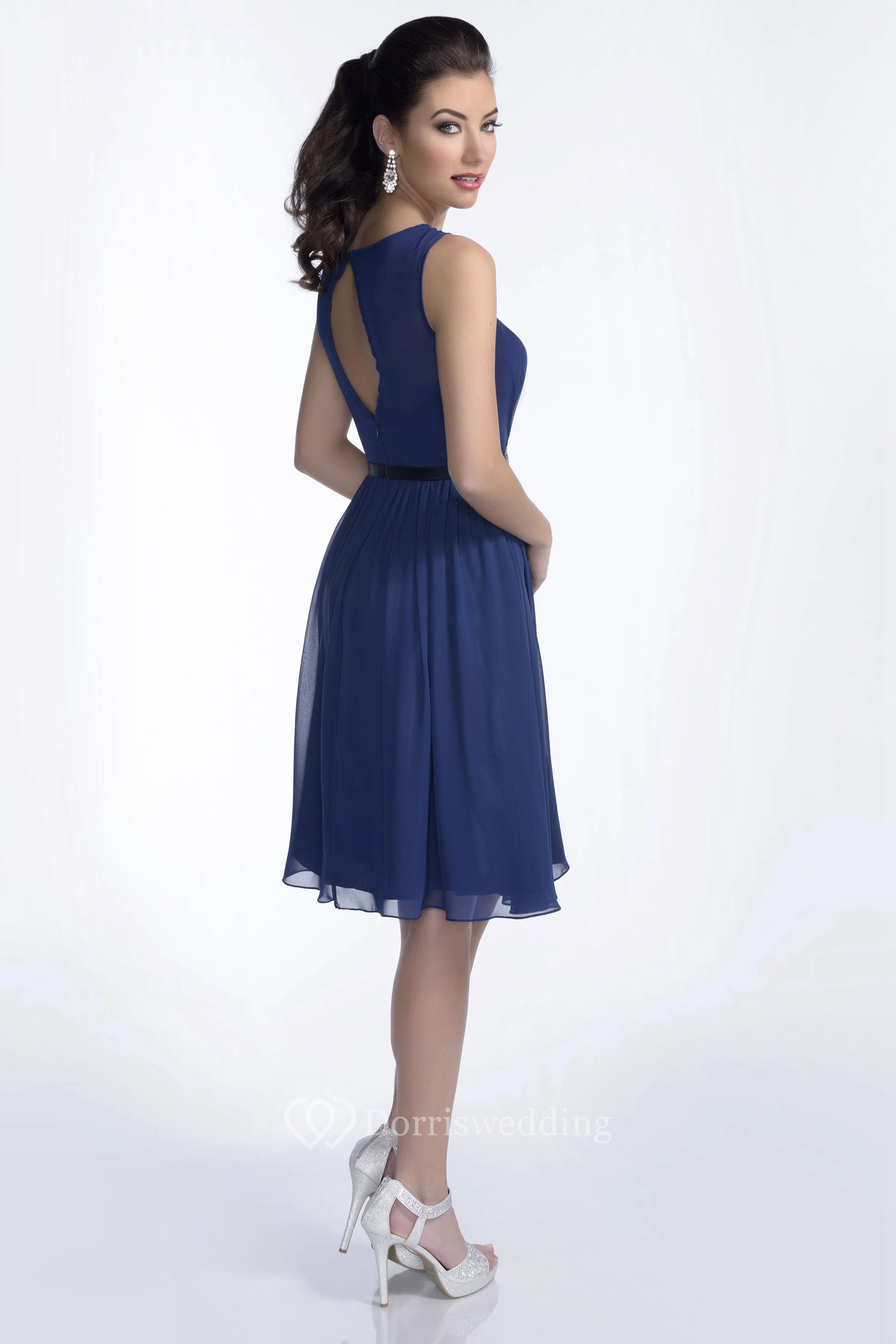 Chiffon Knee Length Sleeveless Bridesmaid Dress With Pleats And Shimmering Brooch